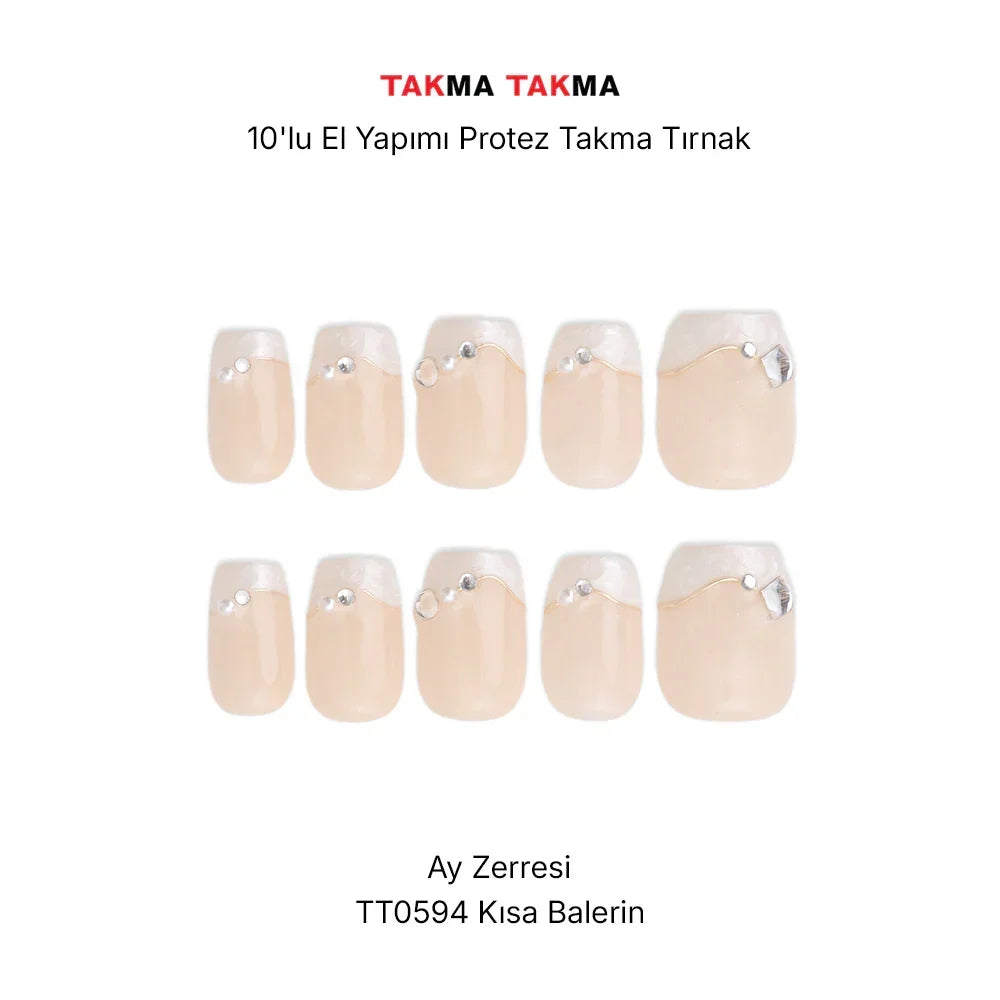 10'lu Ten Rengi Kısa Balerin TT0594 Tekrar Kullanılabilir El Yapımı Protez Takma Tırnak