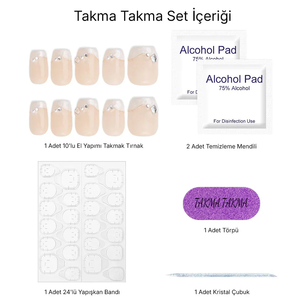 TakmaTakma tırnaklarınızı istediğiniz zaman çıkarıp tekrar takabilirsiniz, üstelik zahmetsizce! İstediğiniz gibi kullanabilir, her an şıklığınızı yenileyebilirsiniz.
