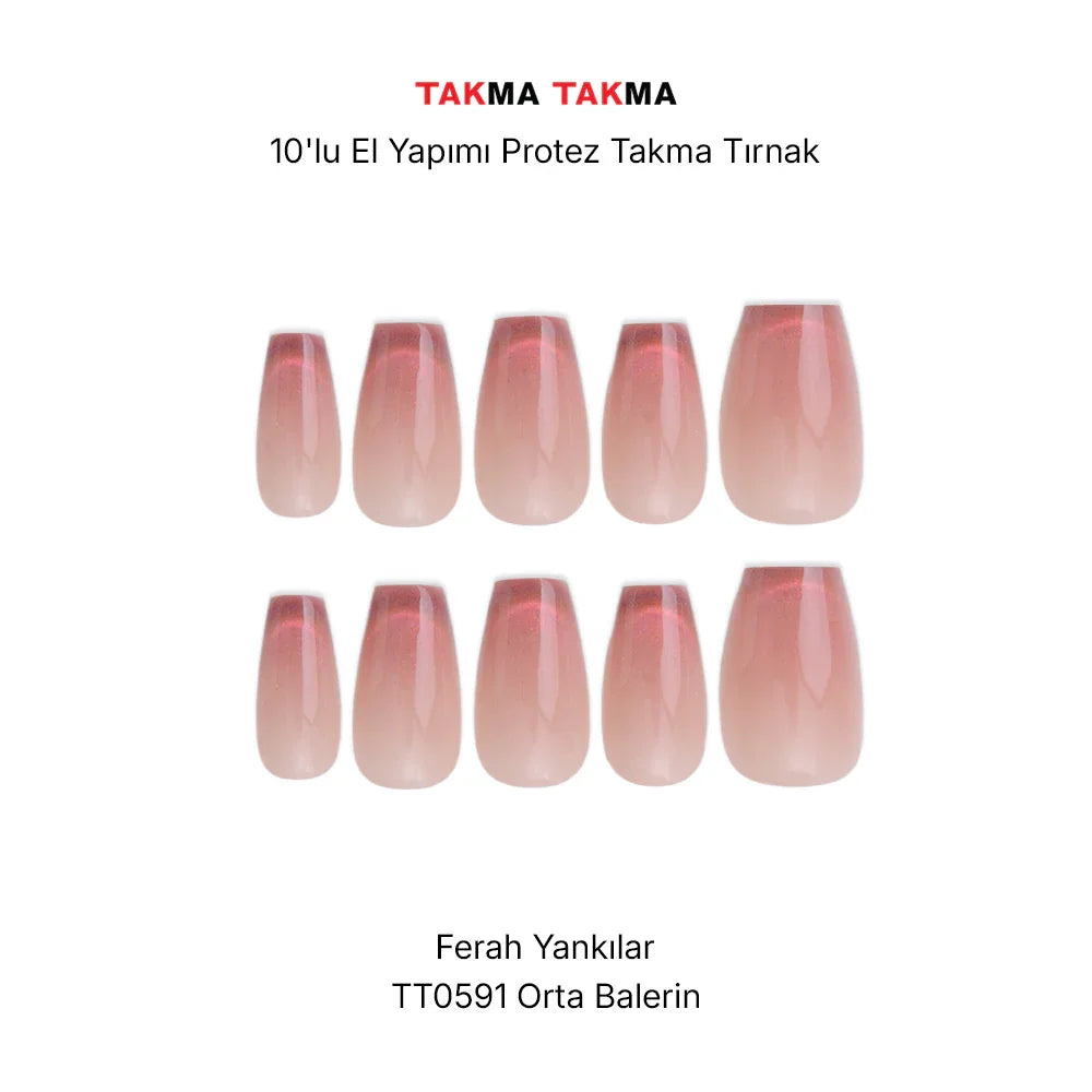 10'lu Ten Rengi Orta Balerin TT0591 Tekrar Kullanılabilir El Yapımı Protez Takma Tırnak