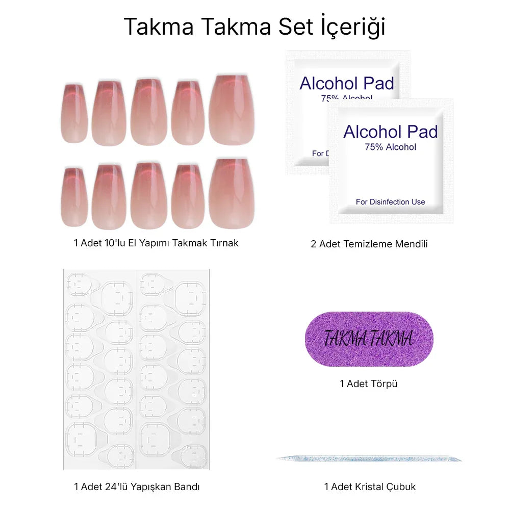 TakmaTakma tırnaklarınızı istediğiniz zaman çıkarıp tekrar takabilirsiniz, üstelik zahmetsizce! İstediğiniz gibi kullanabilir, her an şıklığınızı yenileyebilirsiniz.