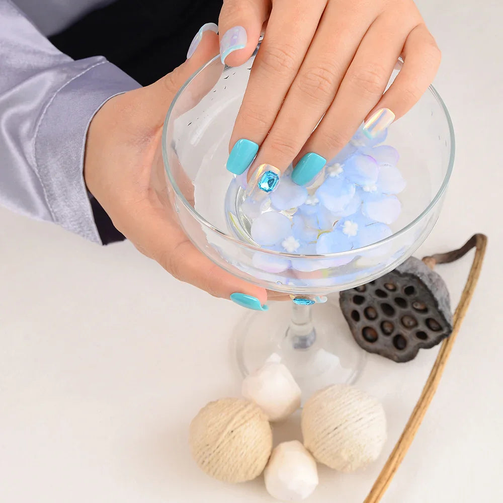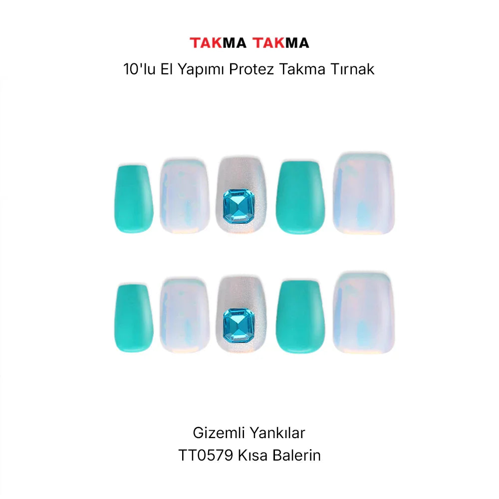 10'lu Mavi Kısa Balerin TT0579 Tekrar Kullanılabilir El Yapımı Protez Takma Tırnak