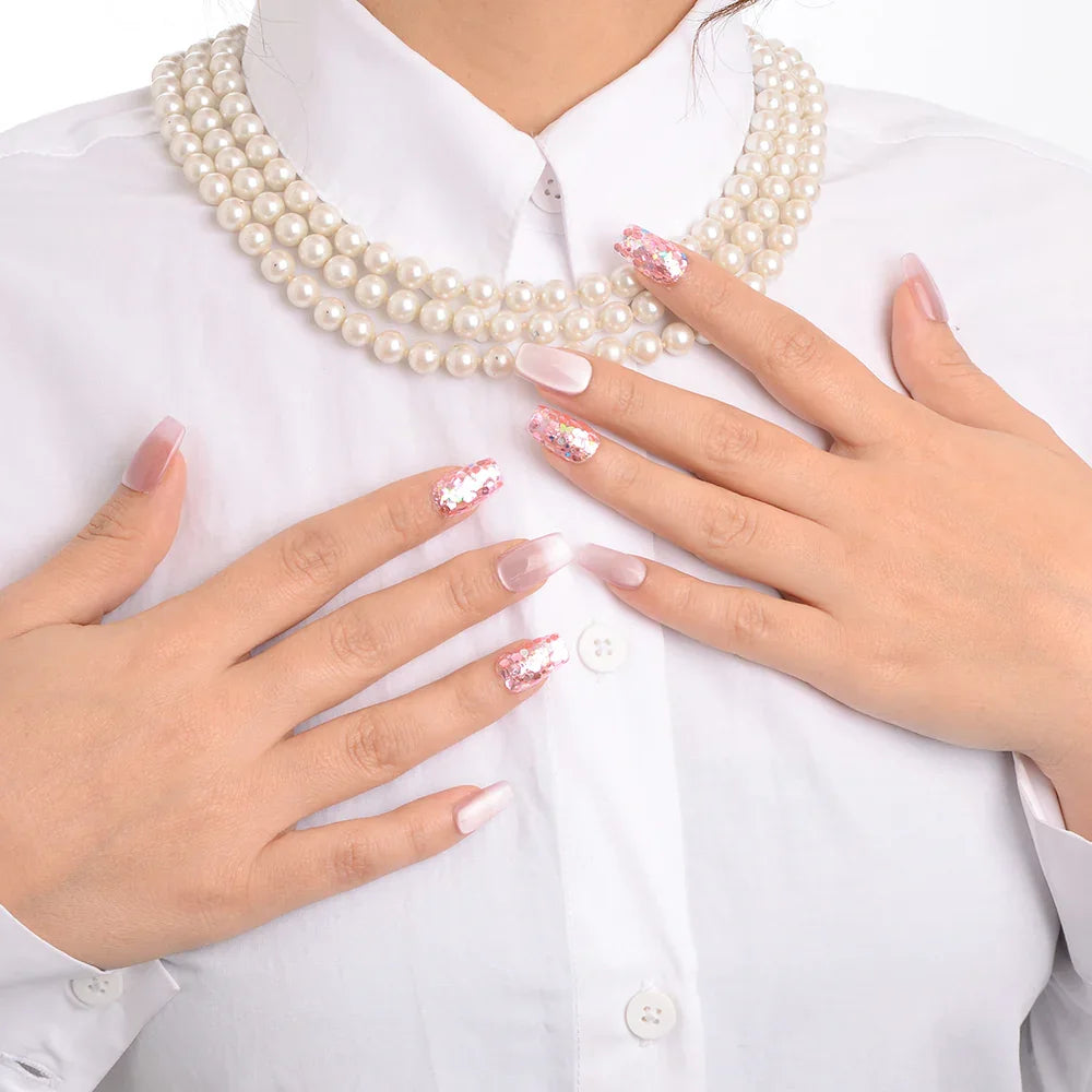 10'lu Pembe Orta Balerin TT0583 Tekrar Kullanılabilir El Yapımı Protez Takma Tırnak