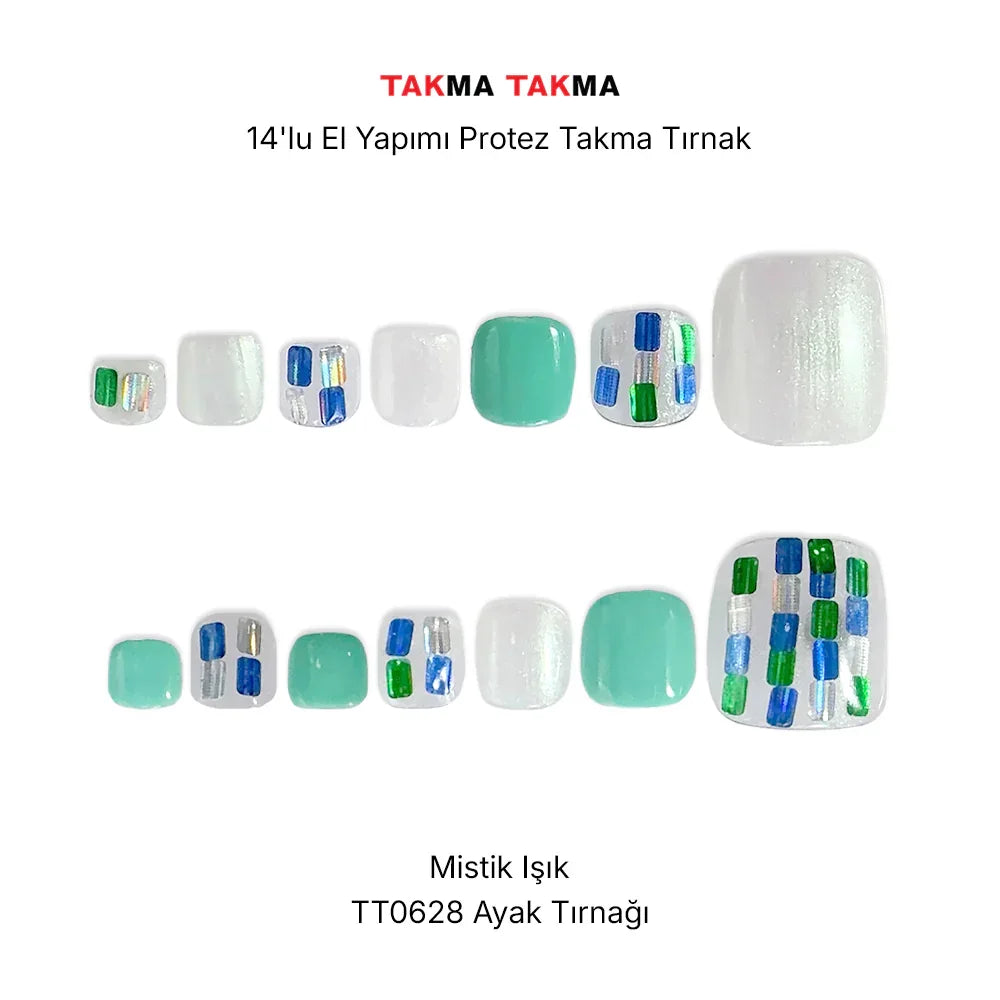 10'lu Mavi Ayak Tırnağı TT0628 Tekrar Kullanılabilir El Yapımı Protez Takma Tırnak