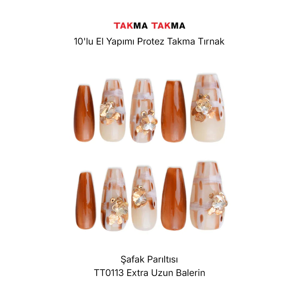 10'lu Ten Rengi Ekstra Uzun Balerin TT0113 Tekrar Kullanılabilir El Yapımı Protez Takma Tırnak