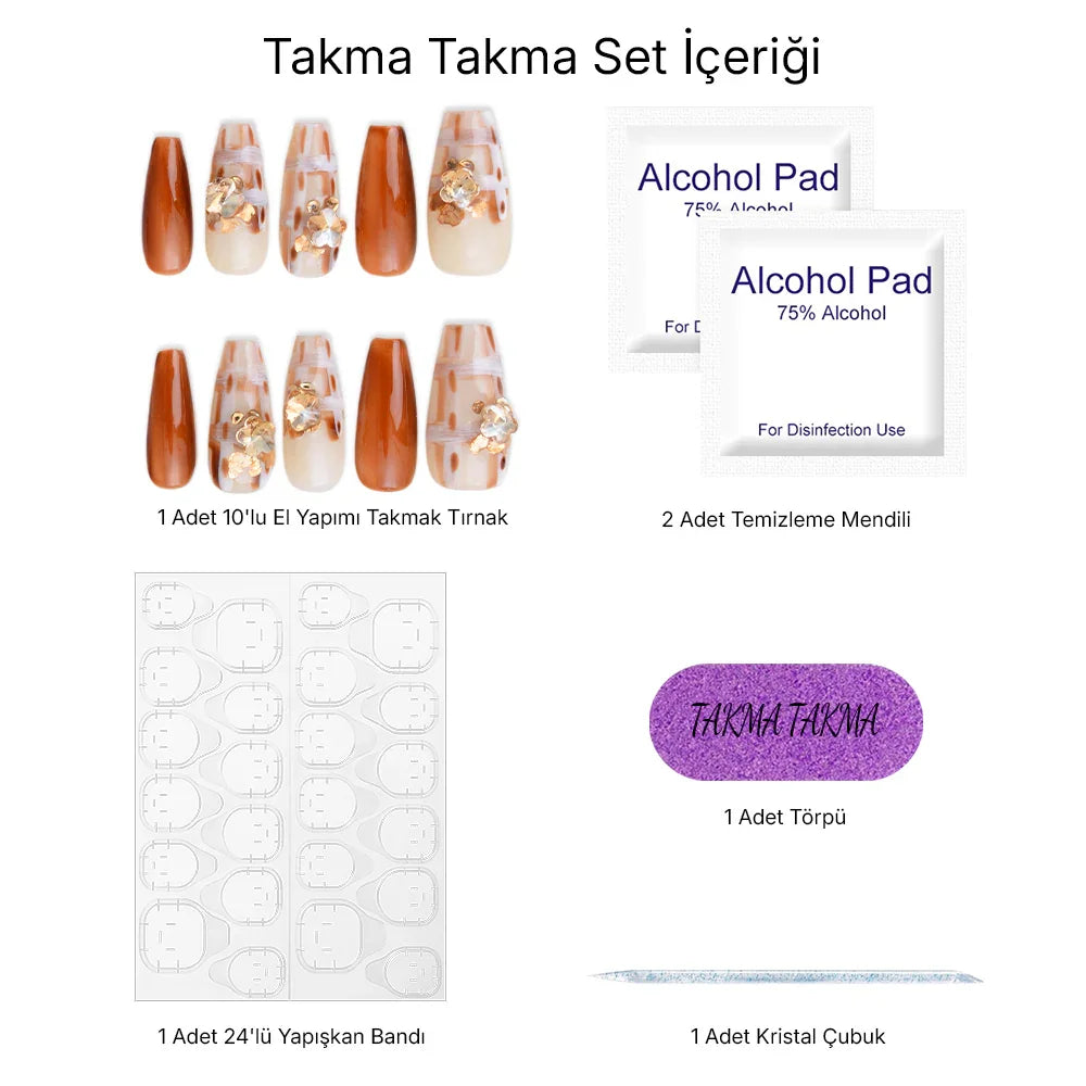 Uzun süreli zarafet için her şey hazır! Özel jel tırnak yapıştırıcımızı kullanarak tırnaklarınızı UV lamba ile mühürleyin. Kullanım süresi, kişisel alışkanlıklarınıza ve aktivitelerinize göre değişebilir.