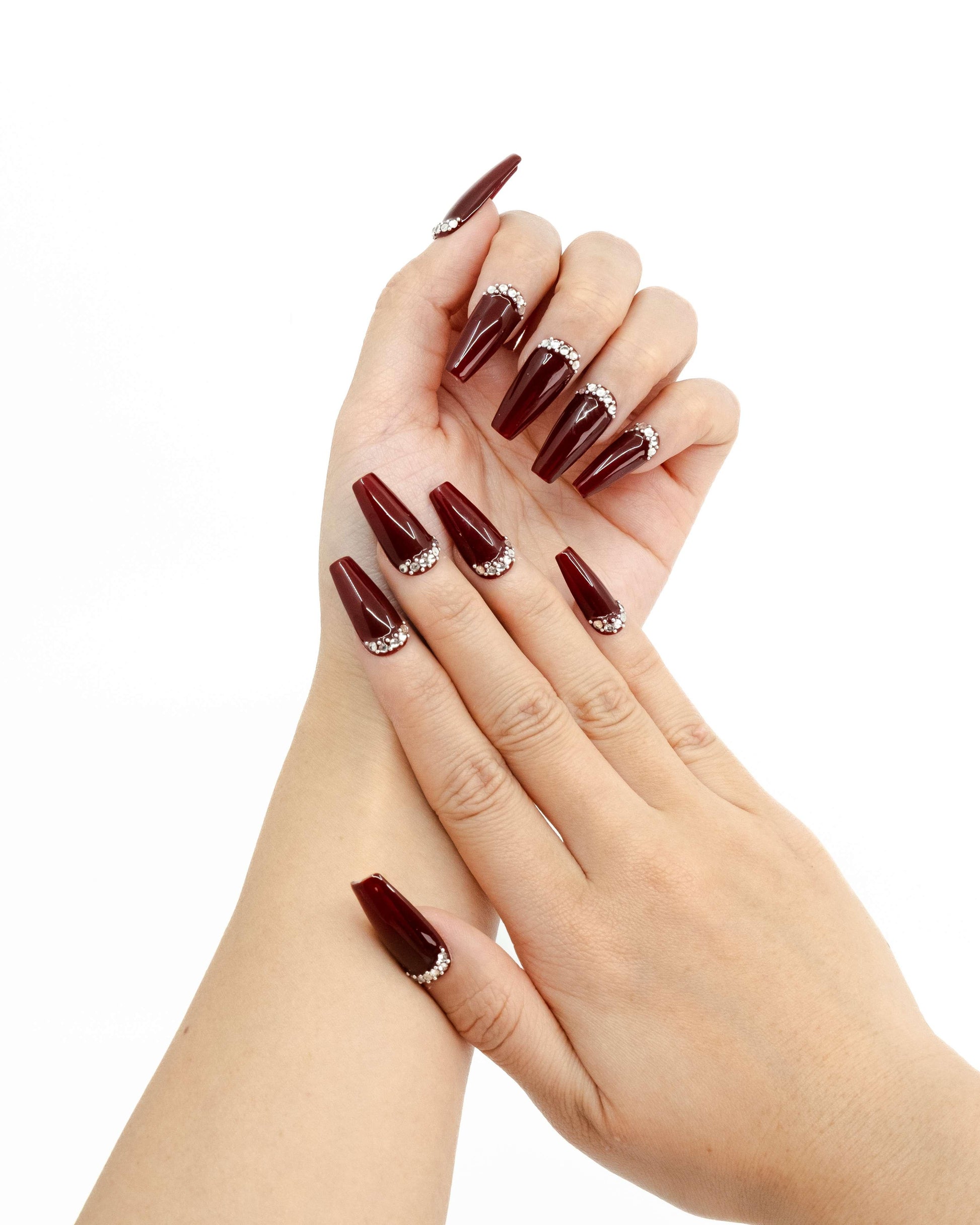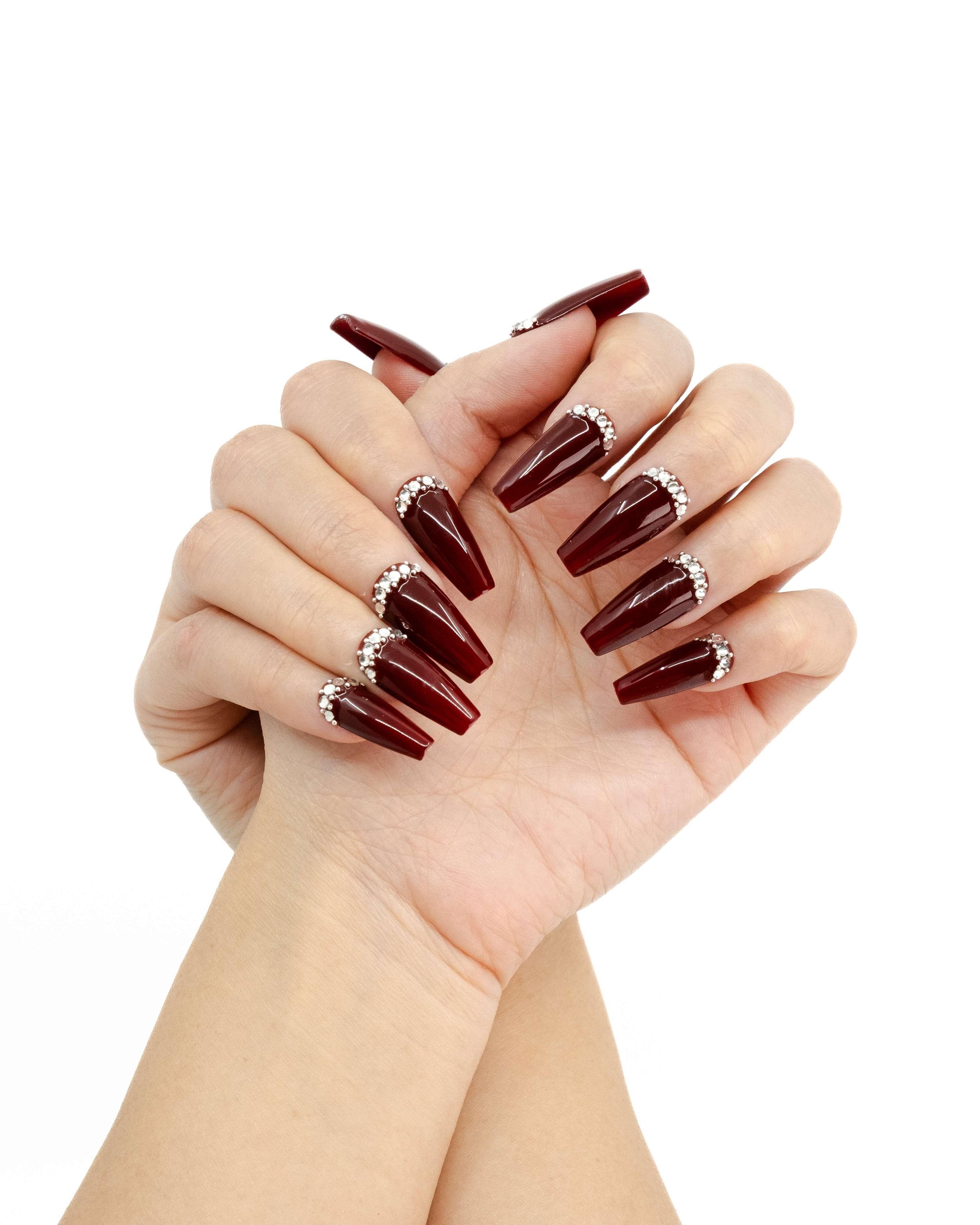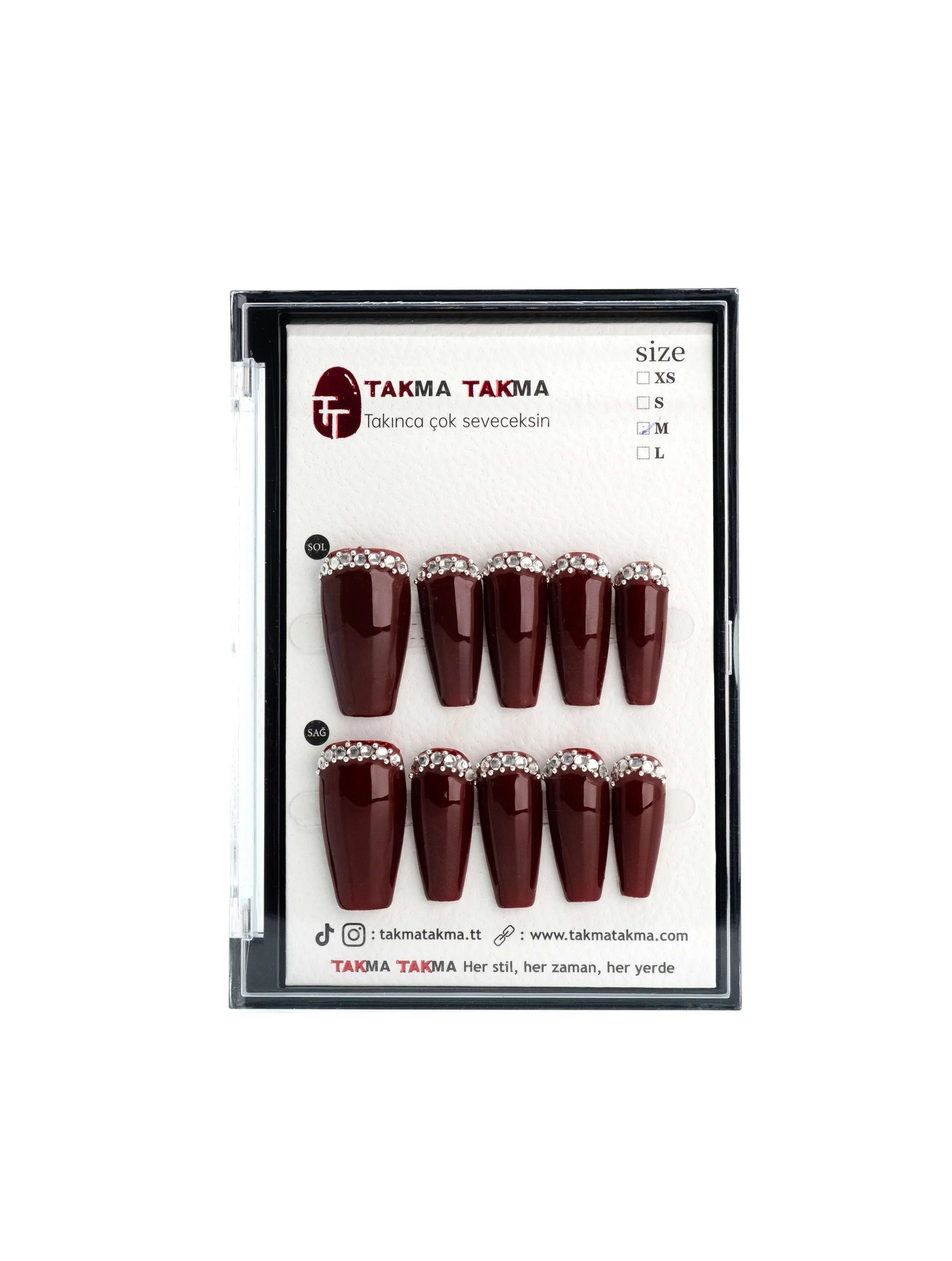 10'lu Bordo Uzun Balerin TT0964 Tekrar Kullanılabilir El Yapımı Protez Takma Tırnak