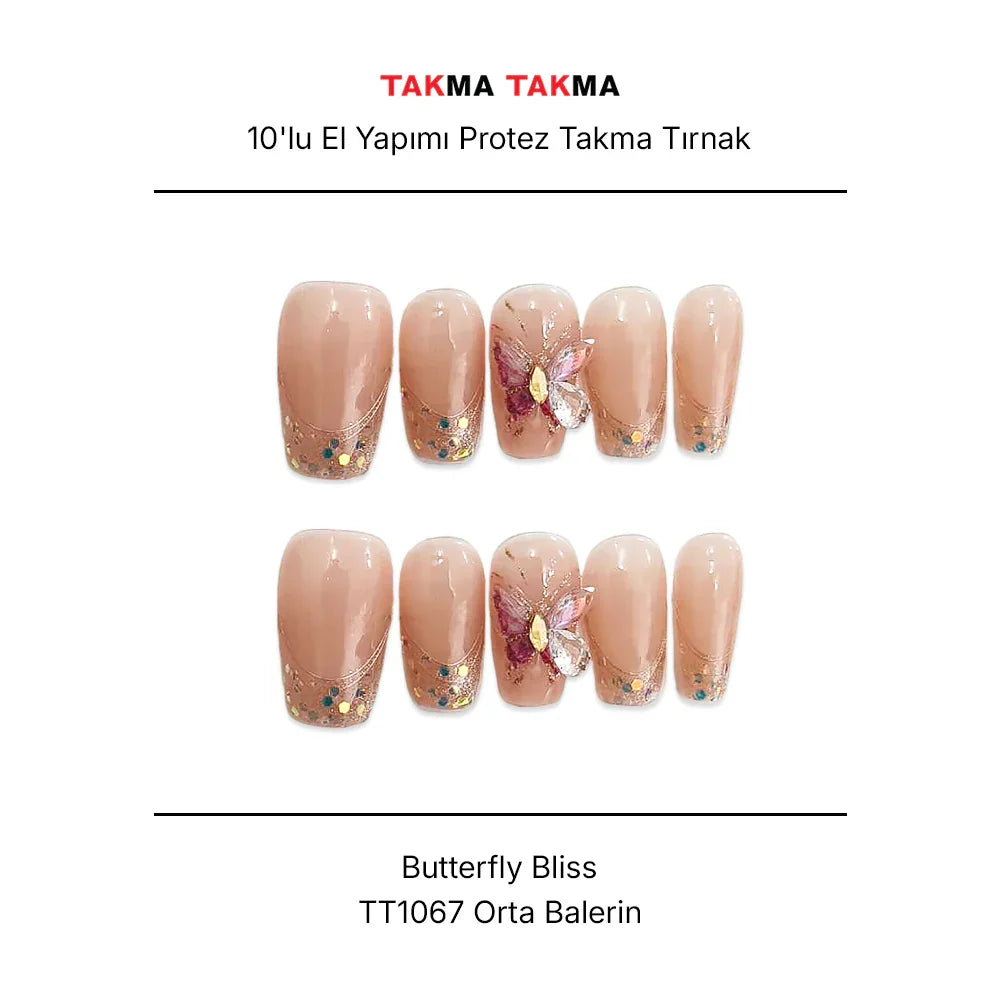 10'lu Pembe Orta Balerin TT1067 Tekrar Kullanılabilir El Yapımı Protez Takma Tırnak