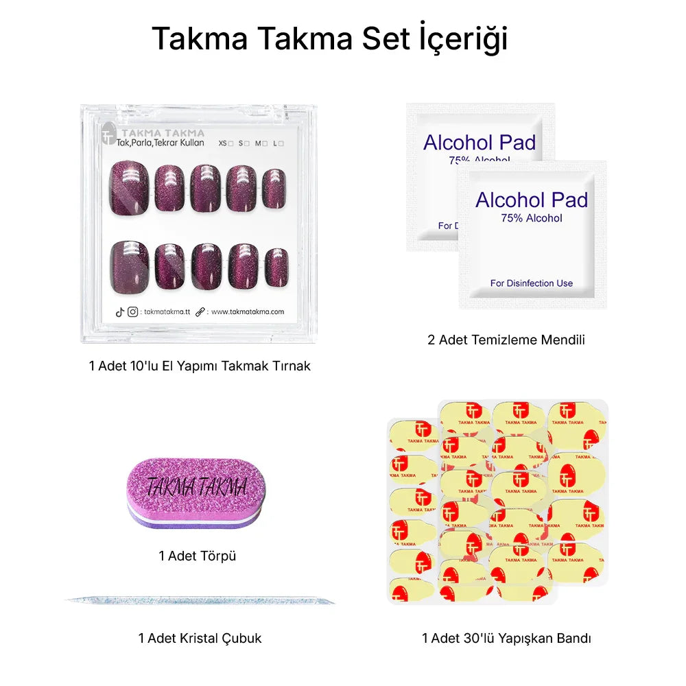 TakmaTakma tırnaklarınızı istediğiniz zaman çıkarıp tekrar takabilirsiniz, üstelik zahmetsizce! İstediğiniz gibi kullanabilir, her an şıklığınızı yenileyebilirsiniz.