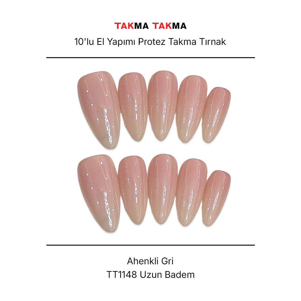 10'lu Gri Uzun Balerin TT1148 Tekrar Kullanılabilir El Yapımı Protez Takma Tırnak