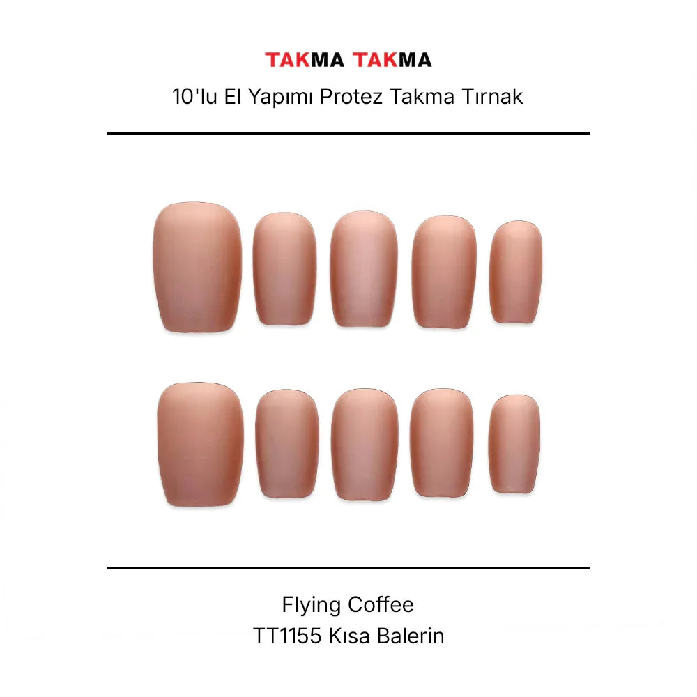 10'lu Kahverengi Kısa Balerin TT1155 Tekrar Kullanılabilir El Yapımı Protez Takma Tırnak
