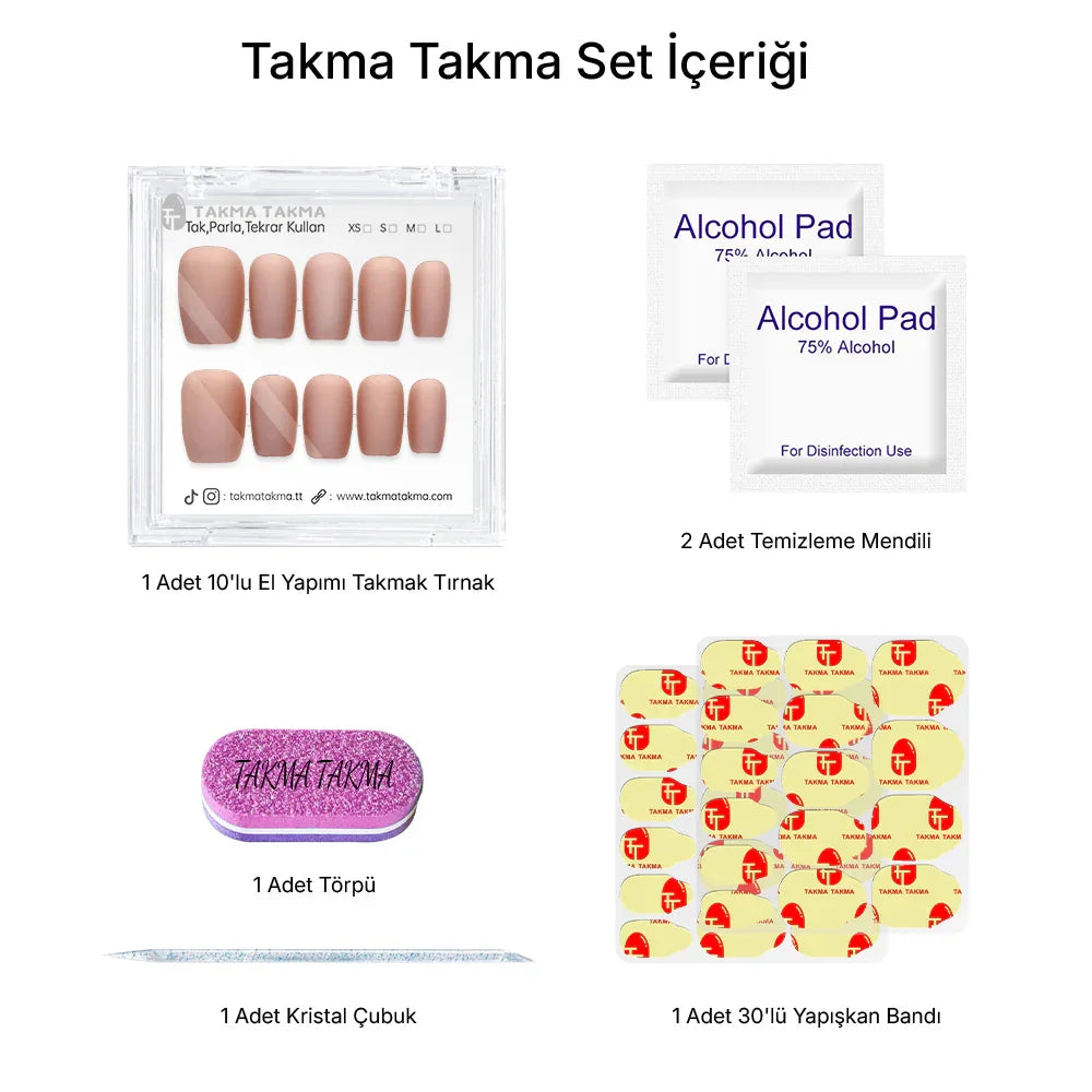 TakmaTakma tırnaklarınızı istediğiniz zaman çıkarıp tekrar takabilirsiniz, üstelik zahmetsizce! İstediğiniz gibi kullanabilir, her an şıklığınızı yenileyebilirsiniz.