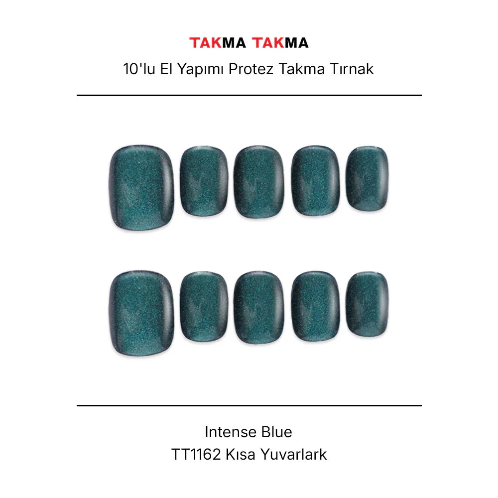 10'lu Mavi Kısa Yuvarlak TT1162 Tekrar Kullanılabilir El Yapımı Protez Takma Tırnak