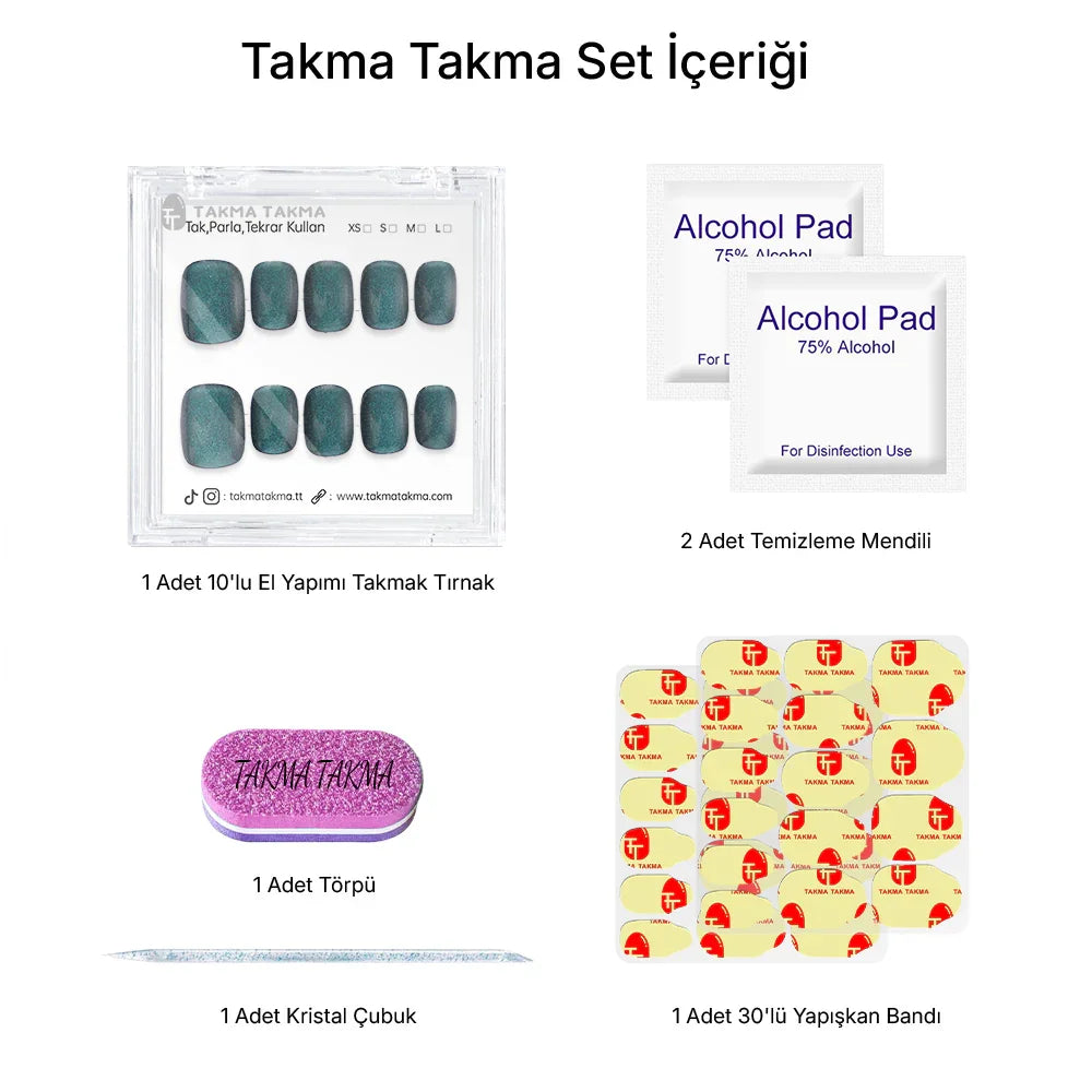 TakmaTakma tırnaklarınızı istediğiniz zaman çıkarıp tekrar takabilirsiniz, üstelik zahmetsizce! İstediğiniz gibi kullanabilir, her an şıklığınızı yenileyebilirsiniz.