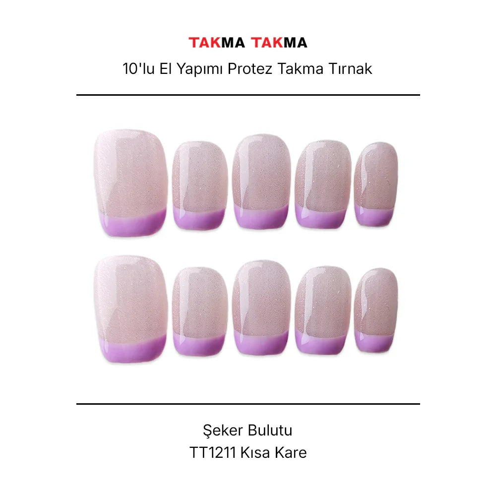 10'lu Pembe Kısa Kare TT1211 Tekrar Kullanılabilir El Yapımı Protez Takma Tırnak