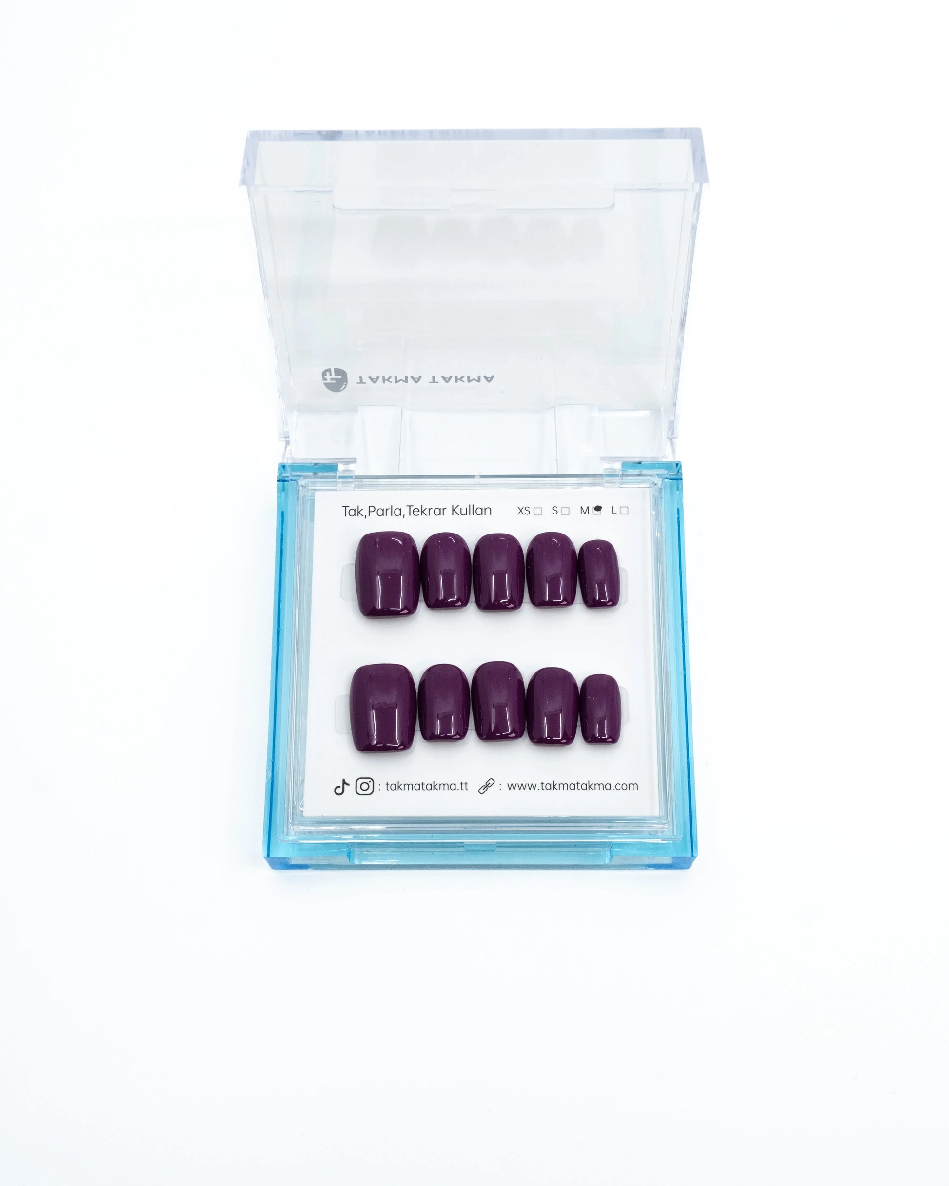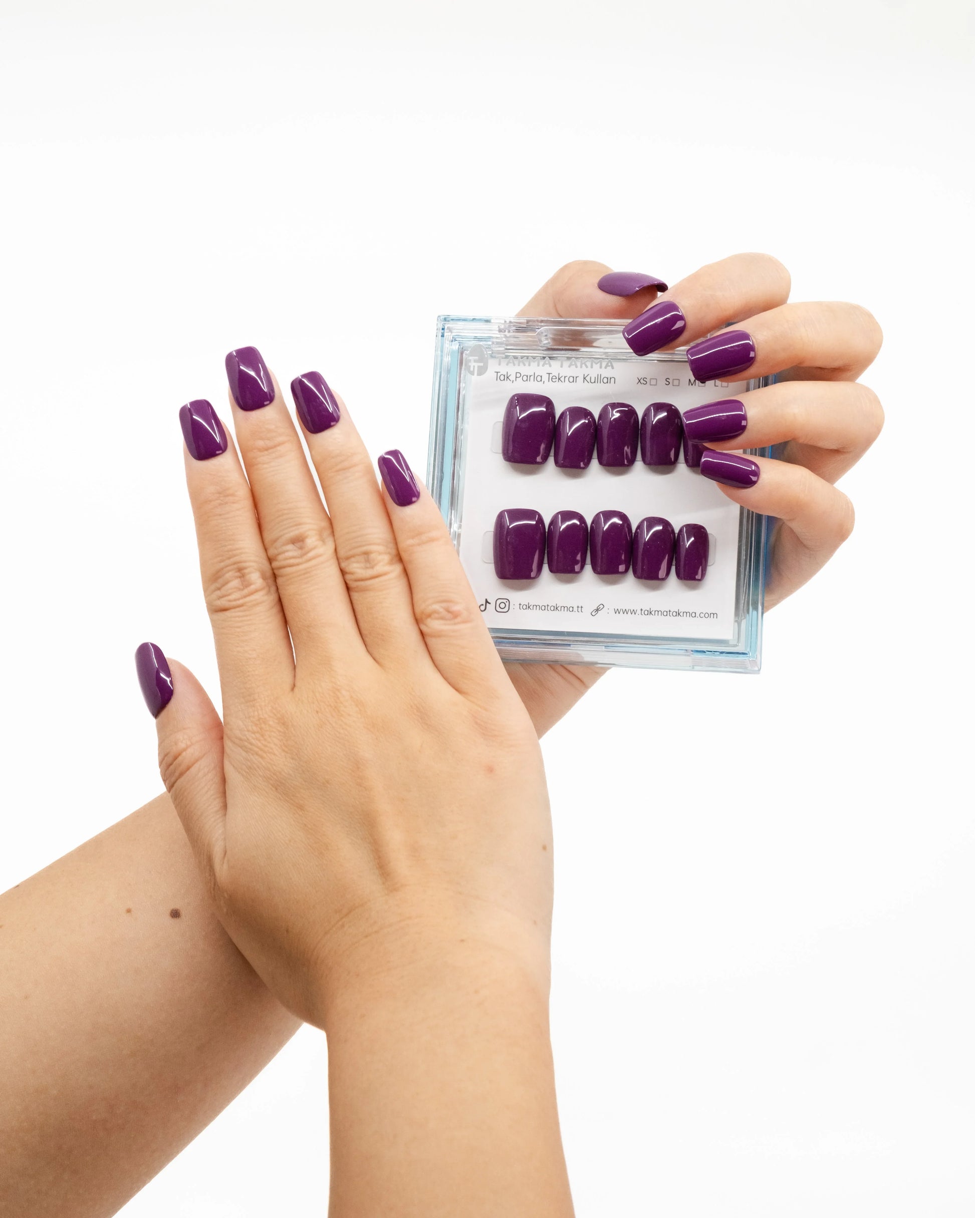 10'lu Mor Kısa Kare TT1233 Tekrar Kullanılabilir El Yapımı Protez Takma Tırnak