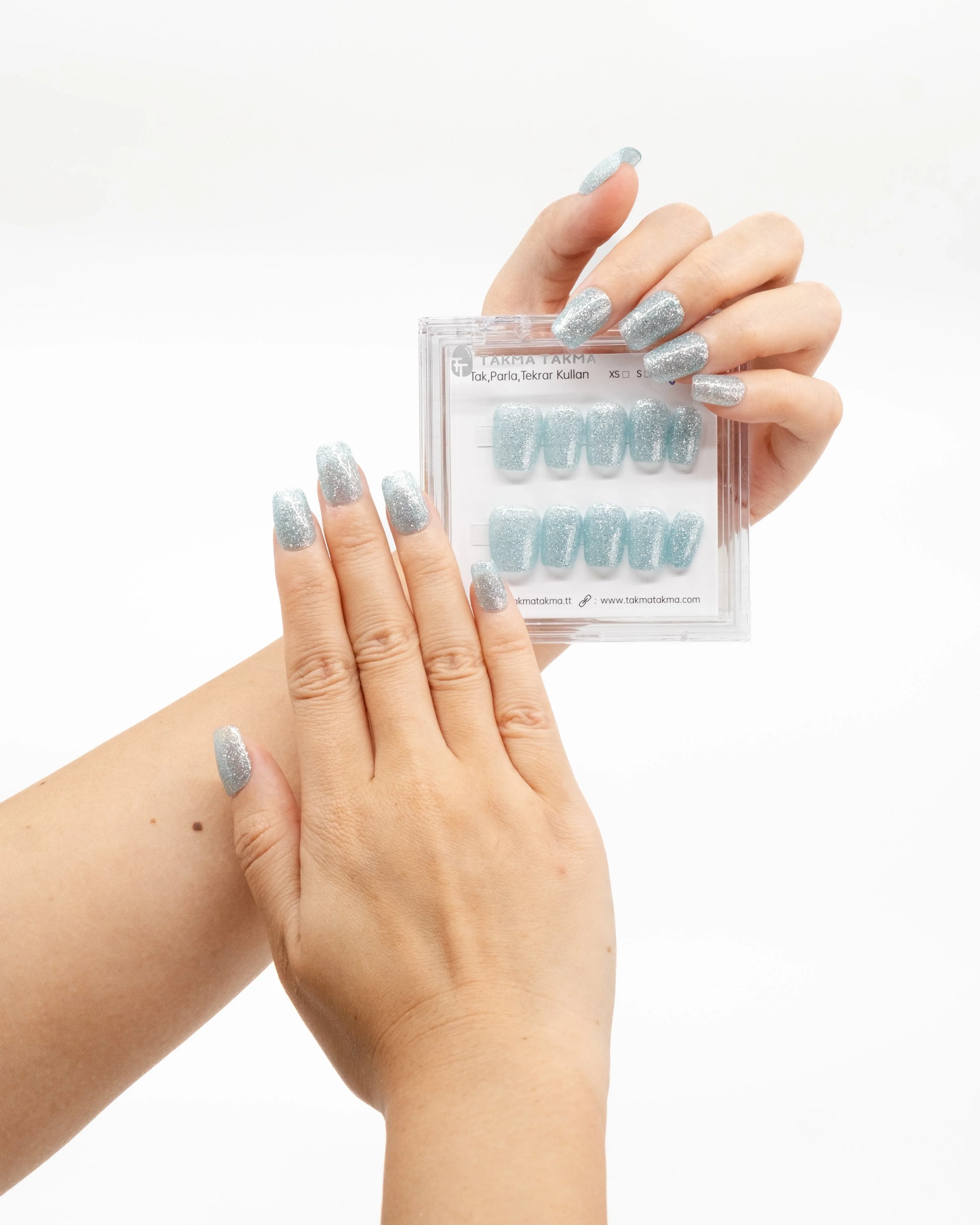 Kısa süreli ışıltılar için ideal. Nazik yapışkan bantlarımızla kolayca takabilir ve 5-7 gün boyunca harika tırnaklara sahip olabilirsiniz.