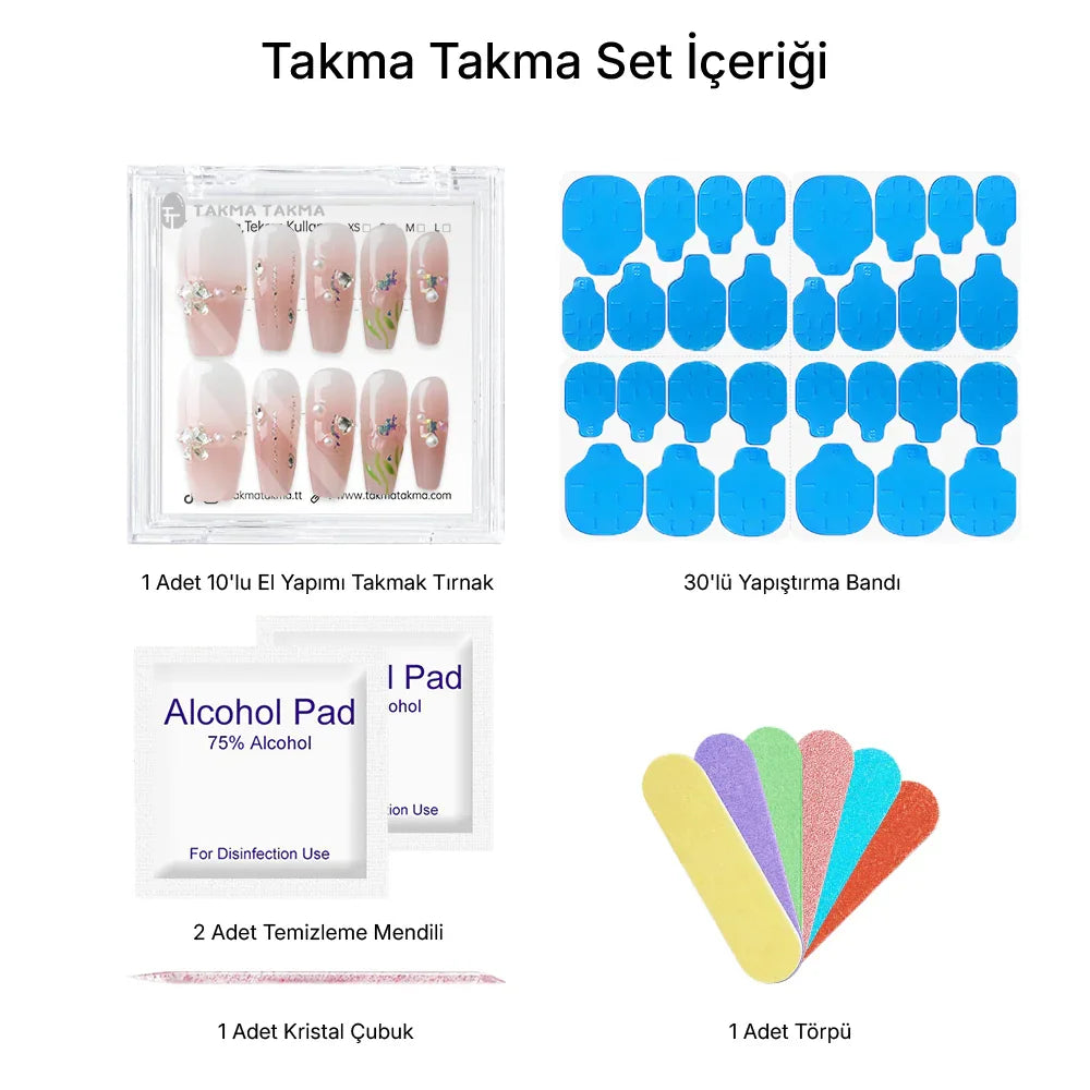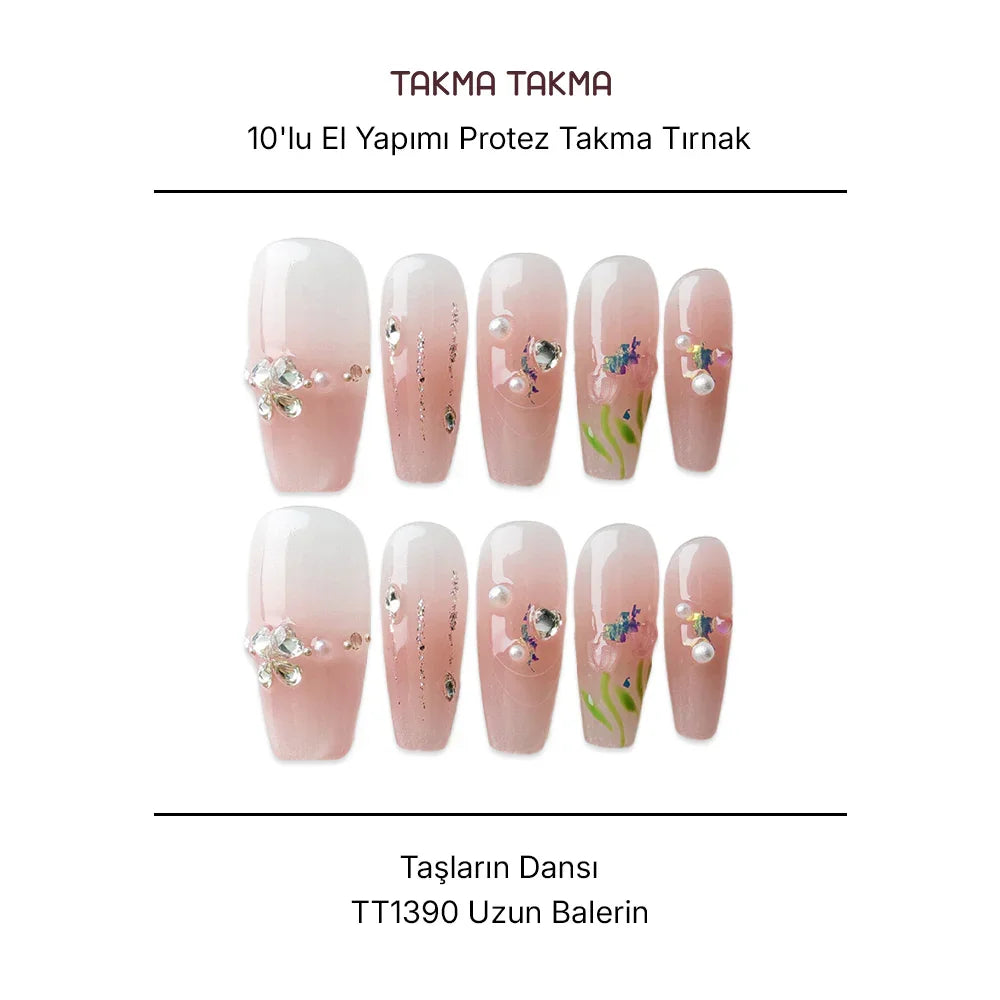 10'lu Pembe Uzun Balerin TT1390 Tekrar Kullanılabilir El Yapımı Protez Takma Tırnak