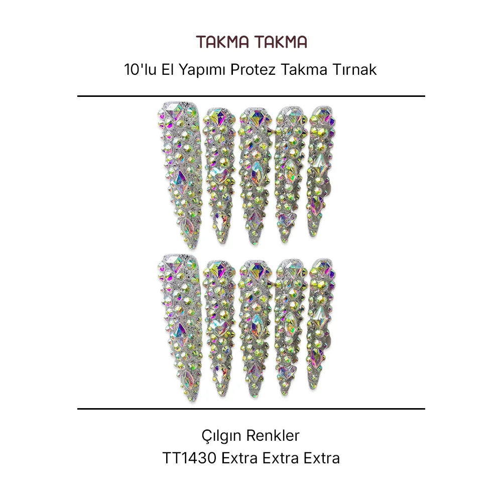 10'lu Beyaz Extra Extra Extra TT1430 Tekrar Kullanılabilir El Yapımı Protez Takma Tırnak