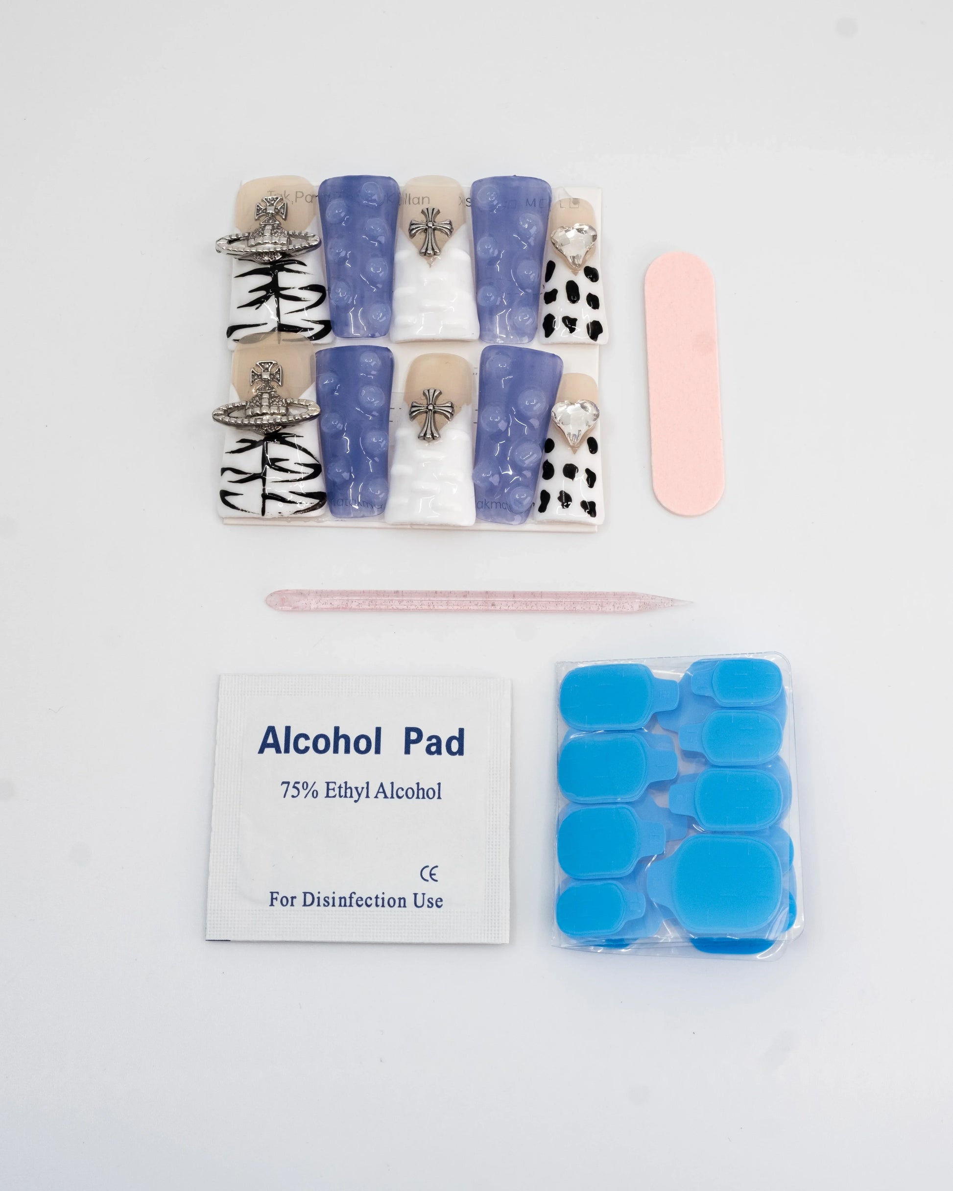 10'lu Mavi Extra Extra Extra TT1435 Tekrar Kullanılabilir El Yapımı Protez Takma Tırnak