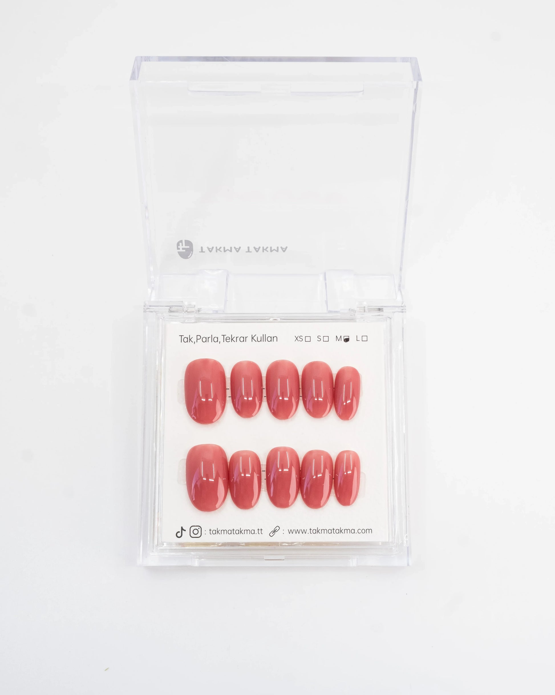 TakmaTakma tırnaklarınızı istediğiniz zaman çıkarıp tekrar takabilirsiniz, üstelik zahmetsizce! İstediğiniz gibi kullanabilir, her an şıklığınızı yenileyebilirsiniz.
