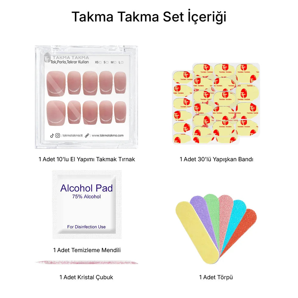 TakmaTakma tırnaklarınızı istediğiniz zaman çıkarıp tekrar takabilirsiniz, üstelik zahmetsizce! İstediğiniz gibi kullanabilir, her an şıklığınızı yenileyebilirsiniz.