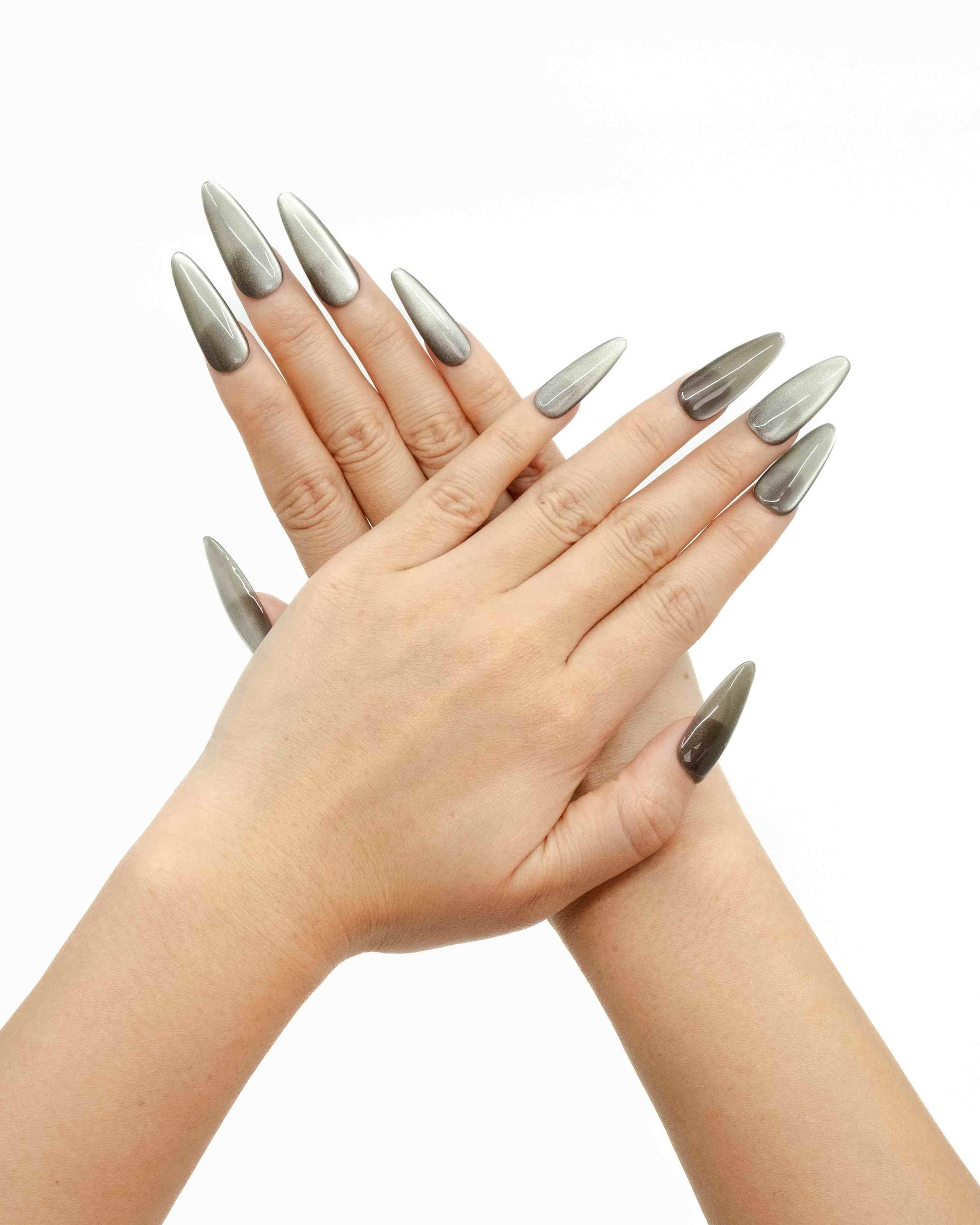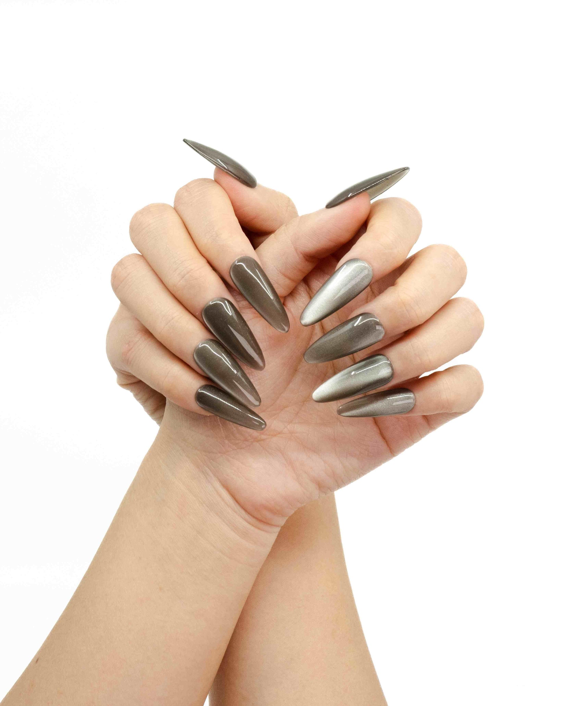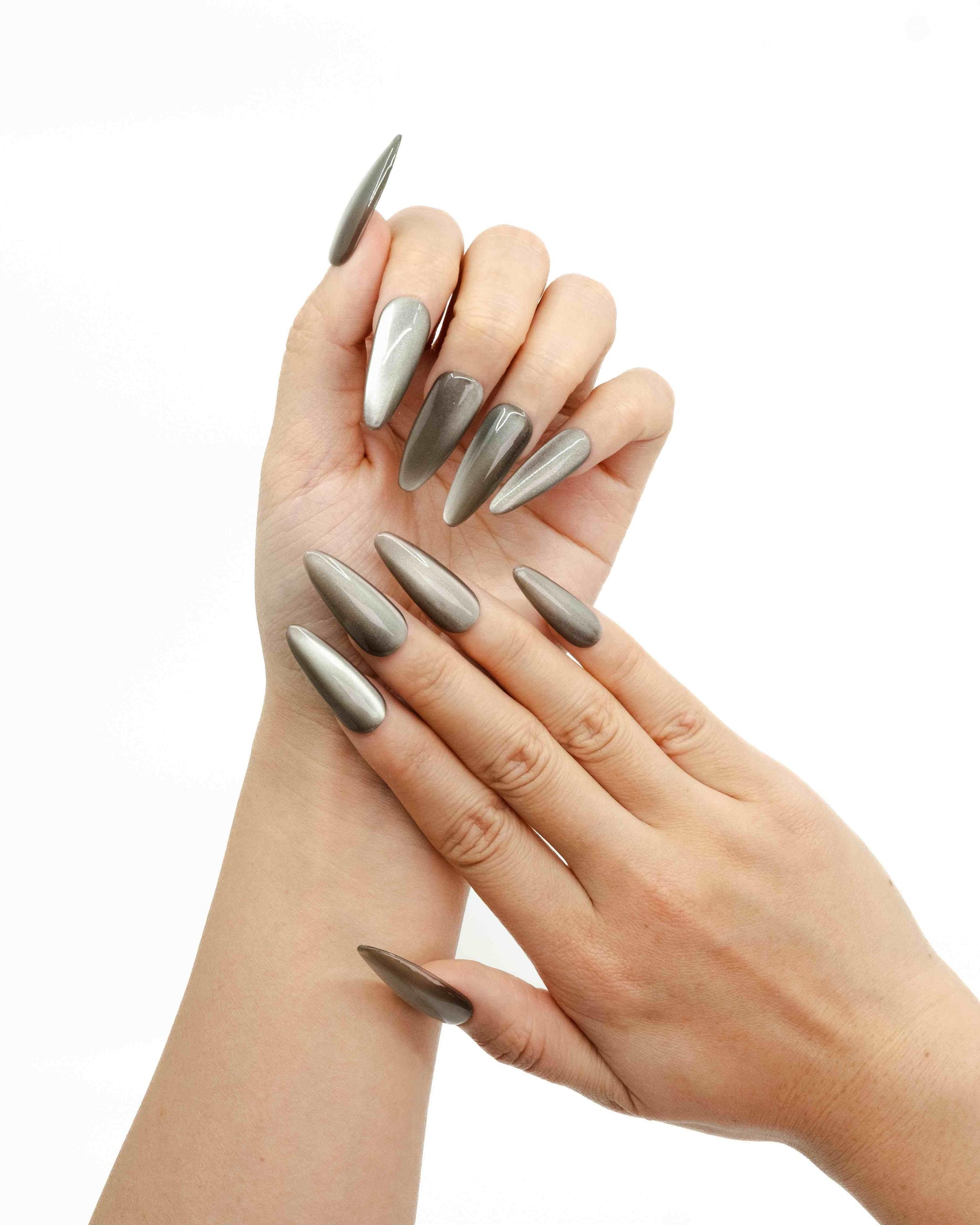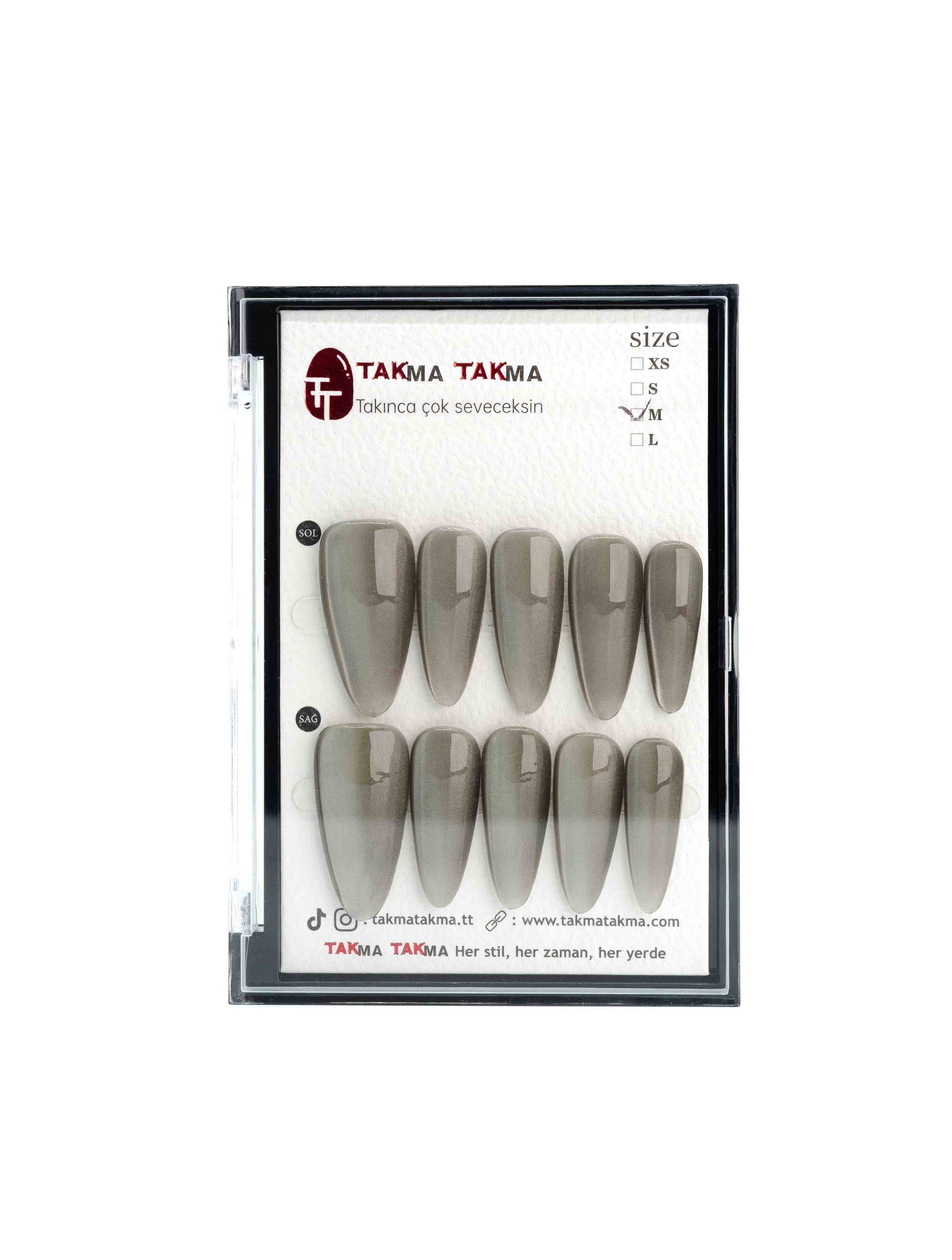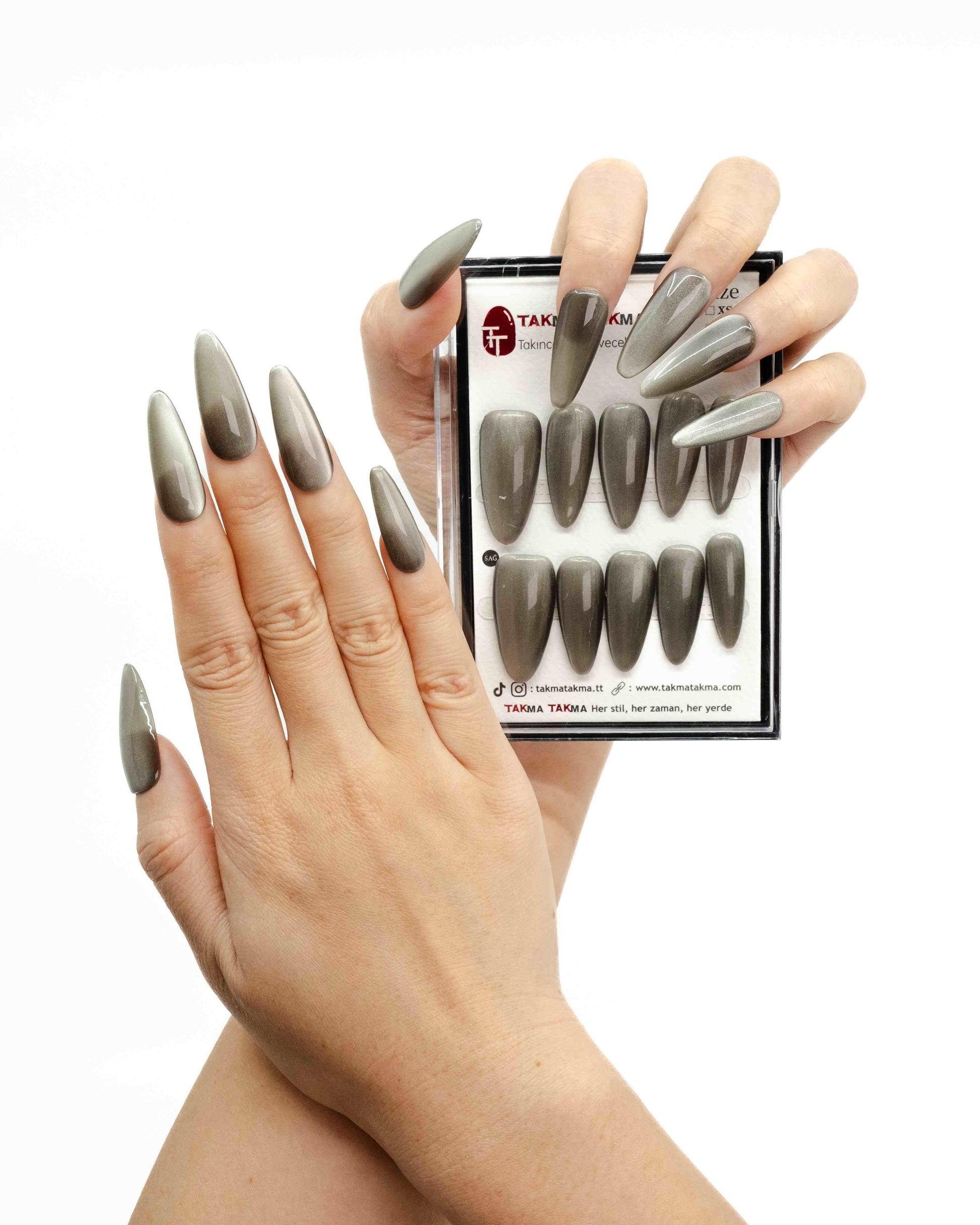 10'lu Gri Uzun Badem TT1014 Tekrar Kullanılabilir El Yapımı Protez Takma Tırnak