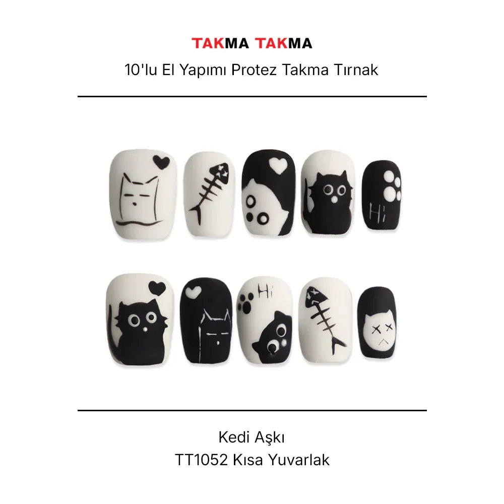 10'lu Siyah Kısa Yuvarlak TT1052 Tekrar Kullanılabilir El Yapımı Protez Takma Tırnak