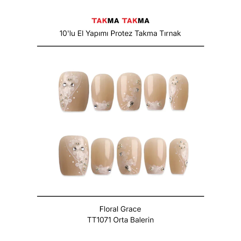 10'lu Ten Rengi Orta Balerin TT1071 Tekrar Kullanılabilir El Yapımı Protez Takma Tırnak