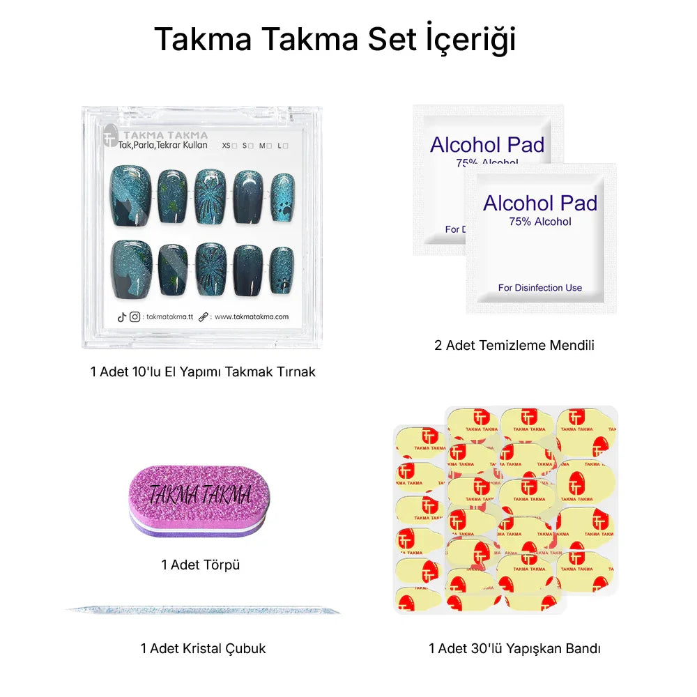 TakmaTakma tırnaklarınızı istediğiniz zaman çıkarıp tekrar takabilirsiniz, üstelik zahmetsizce! İstediğiniz gibi kullanabilir, her an şıklığınızı yenileyebilirsiniz.