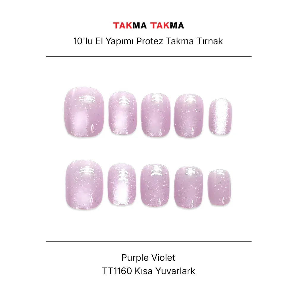 10'lu Mor Kısa Yuvarlak TT1160 Tekrar Kullanılabilir El Yapımı Protez Takma Tırnak