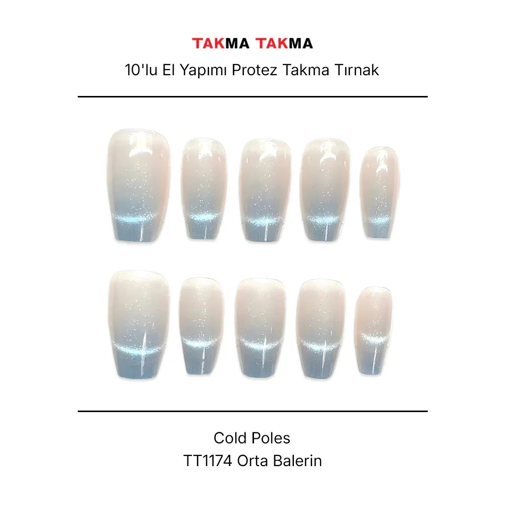 10'lu Mavi Orta Balerin TT1174 Tekrar Kullanılabilir El Yapımı Protez Takma Tırnak