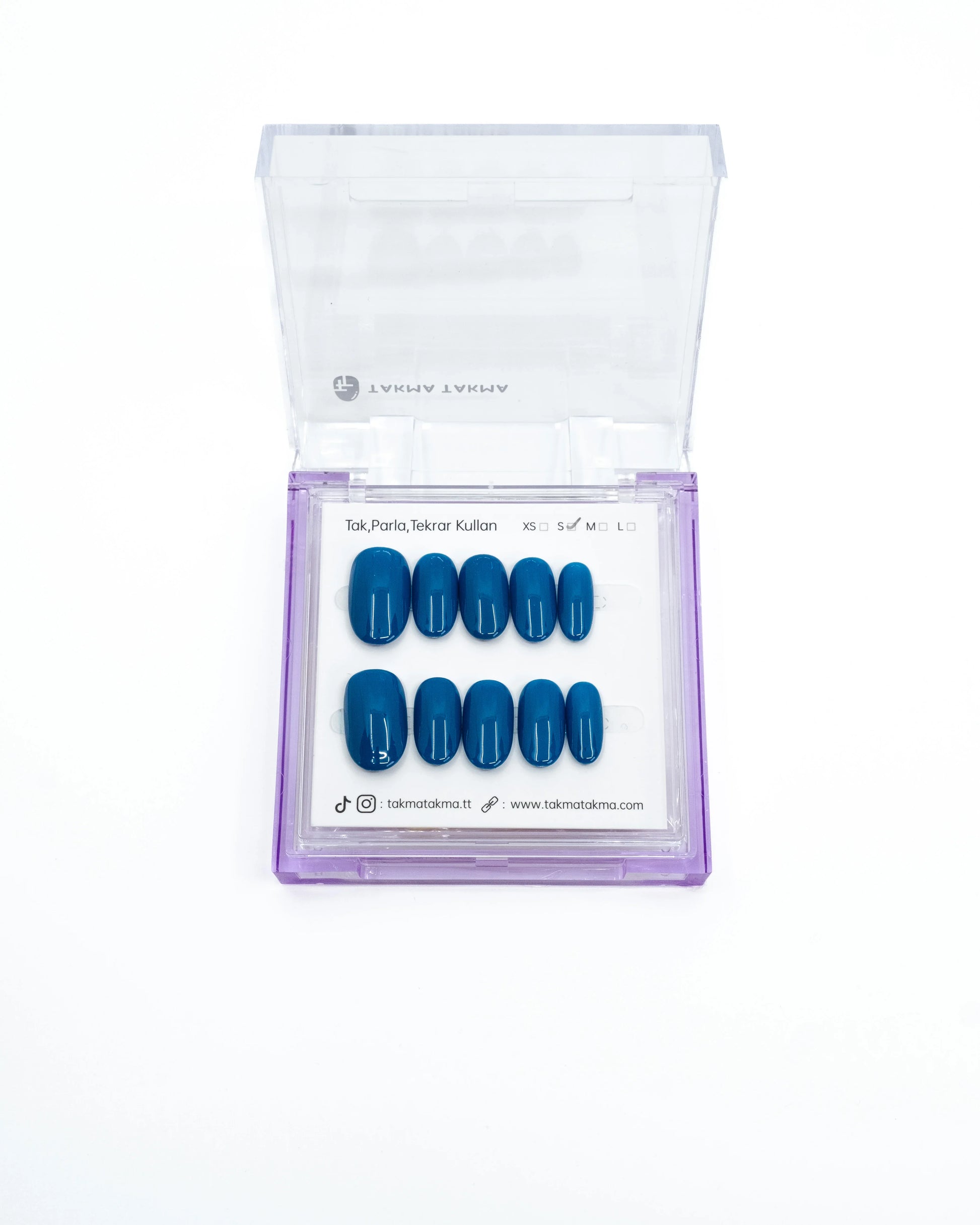 10'lu Mavi Kısa Oval TT1267 Tekrar Kullanılabilir El Yapımı Protez Takma Tırnak