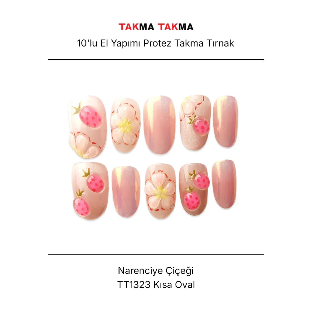 10'lu Pembe Kısa Oval TT1323 Tekrar Kullanılabilir El Yapımı Protez Takma Tırnak