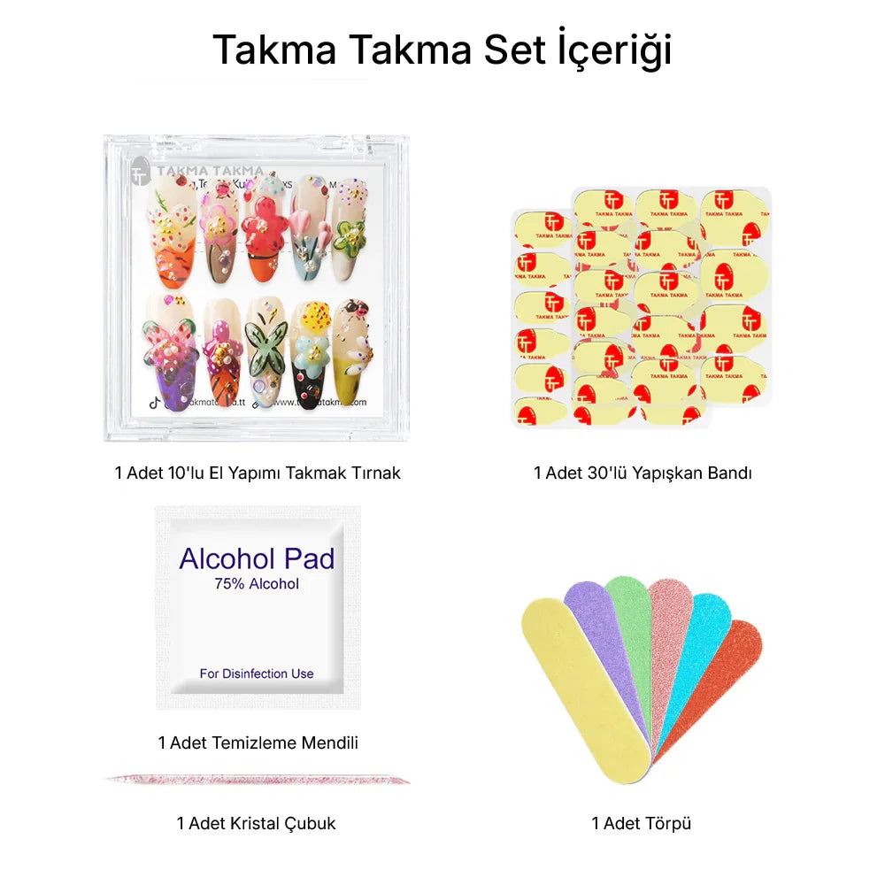 TakmaTakma tırnaklarınızı istediğiniz zaman çıkarıp tekrar takabilirsiniz, üstelik zahmetsizce! İstediğiniz gibi kullanabilir, her an şıklığınızı yenileyebilirsiniz.