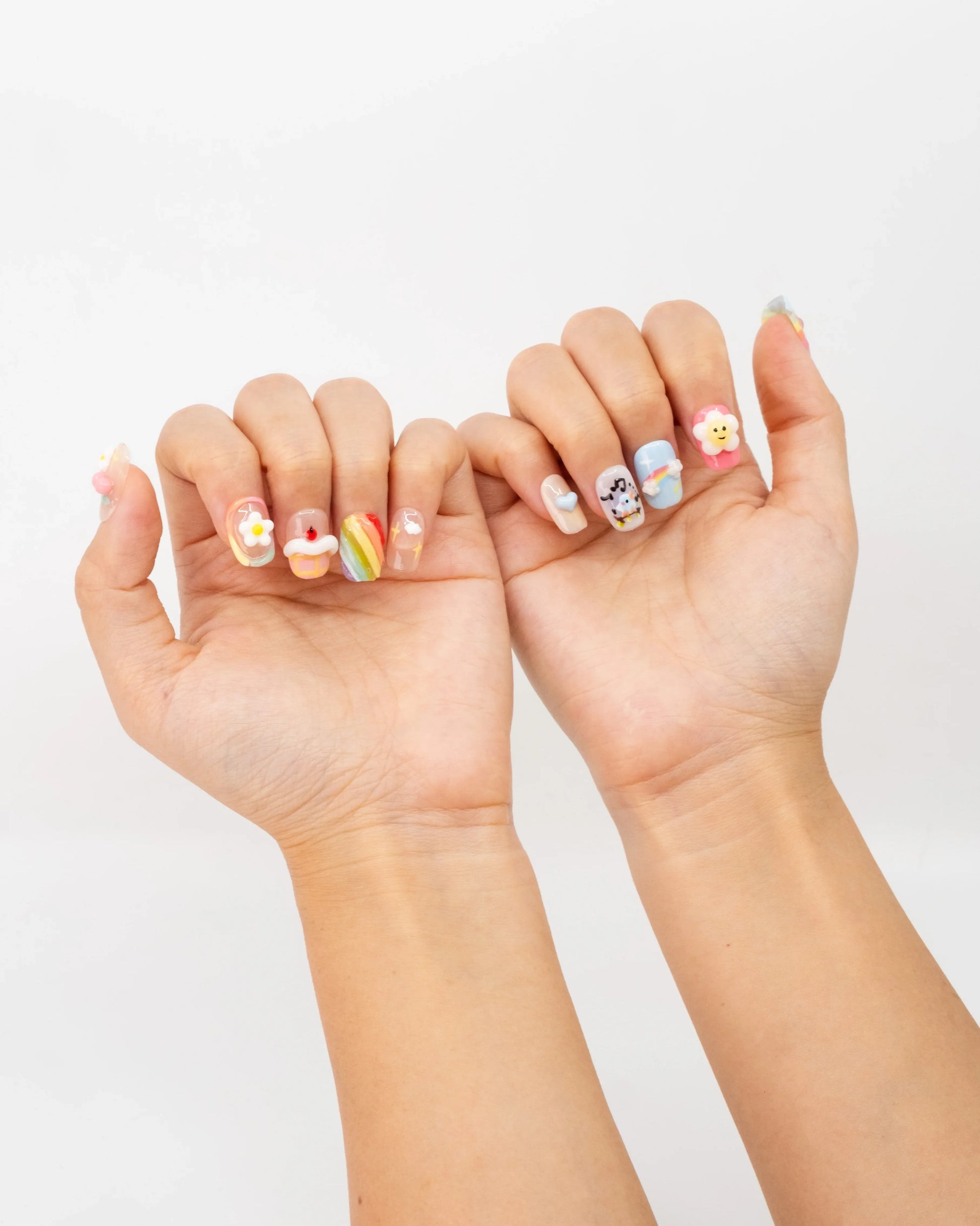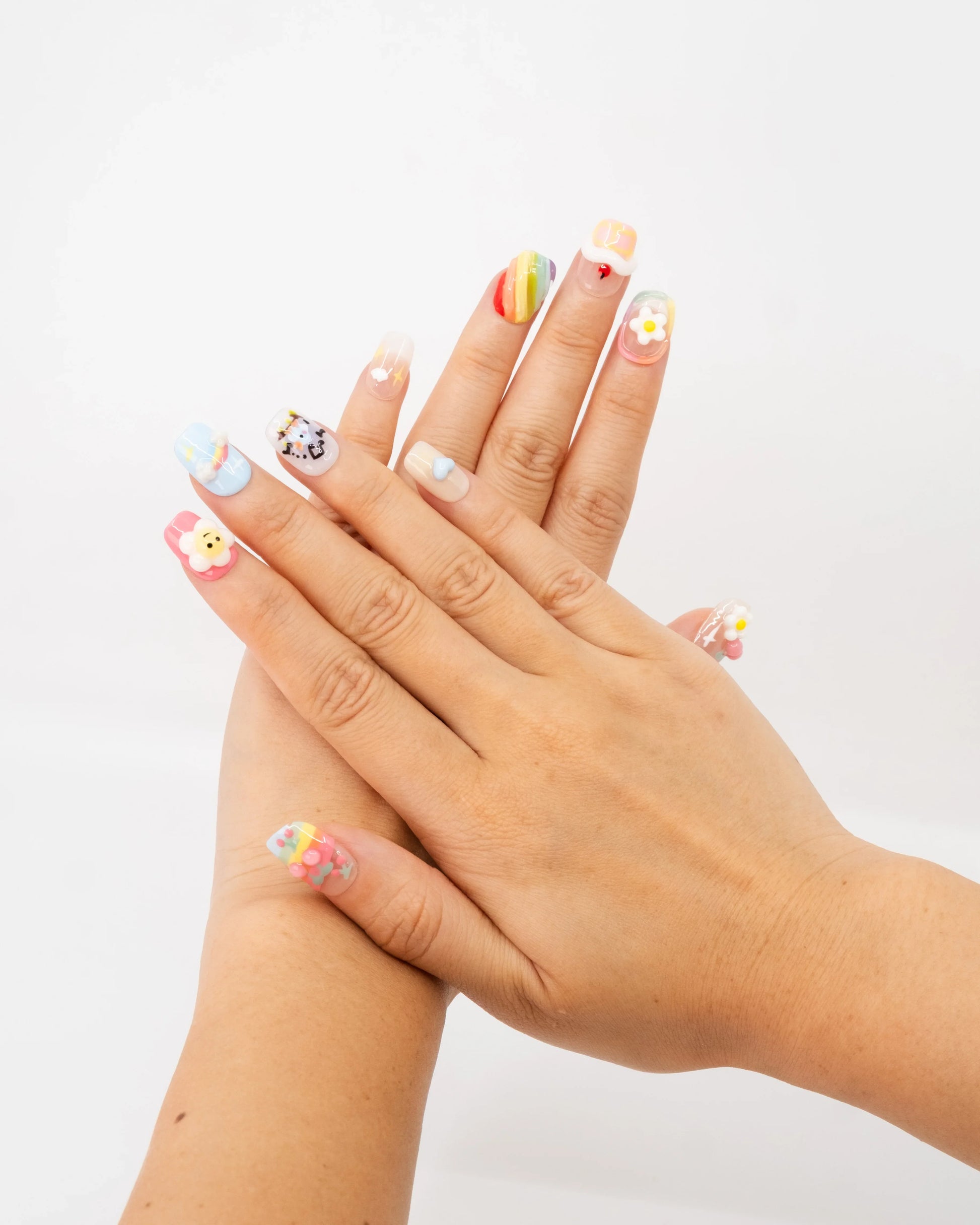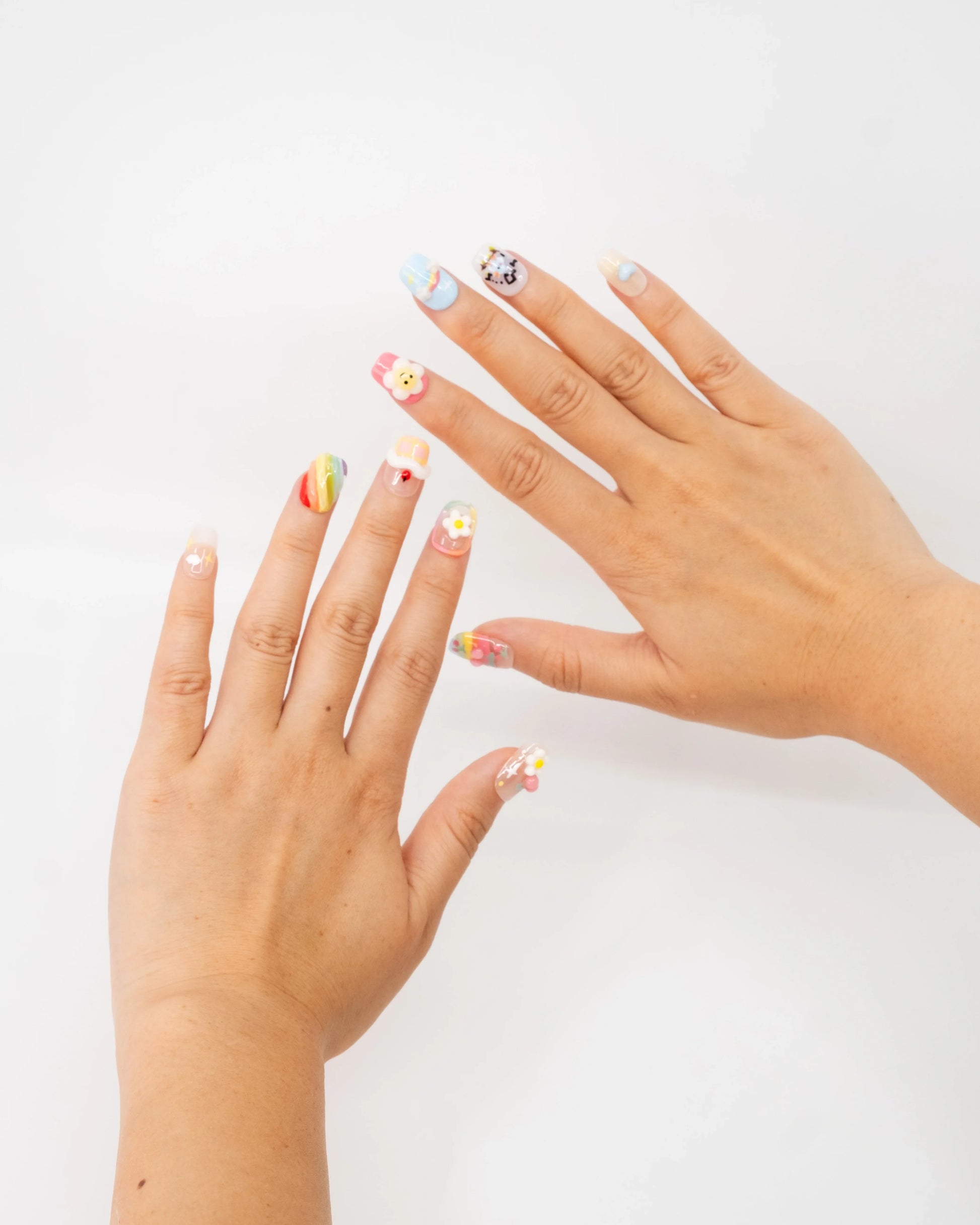 10'lu Renkli Kısa Kare TT1394 Tekrar Kullanılabilir El Yapımı Protez Takma Tırnak