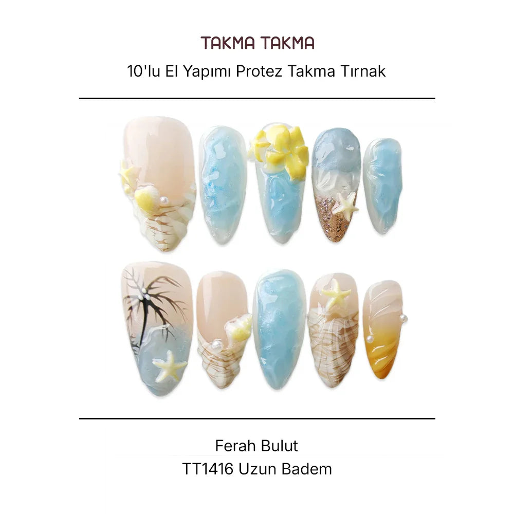 10'lu Renkli Uzun Badem TT1416 Tekrar Kullanılabilir El Yapımı Protez Takma Tırnak