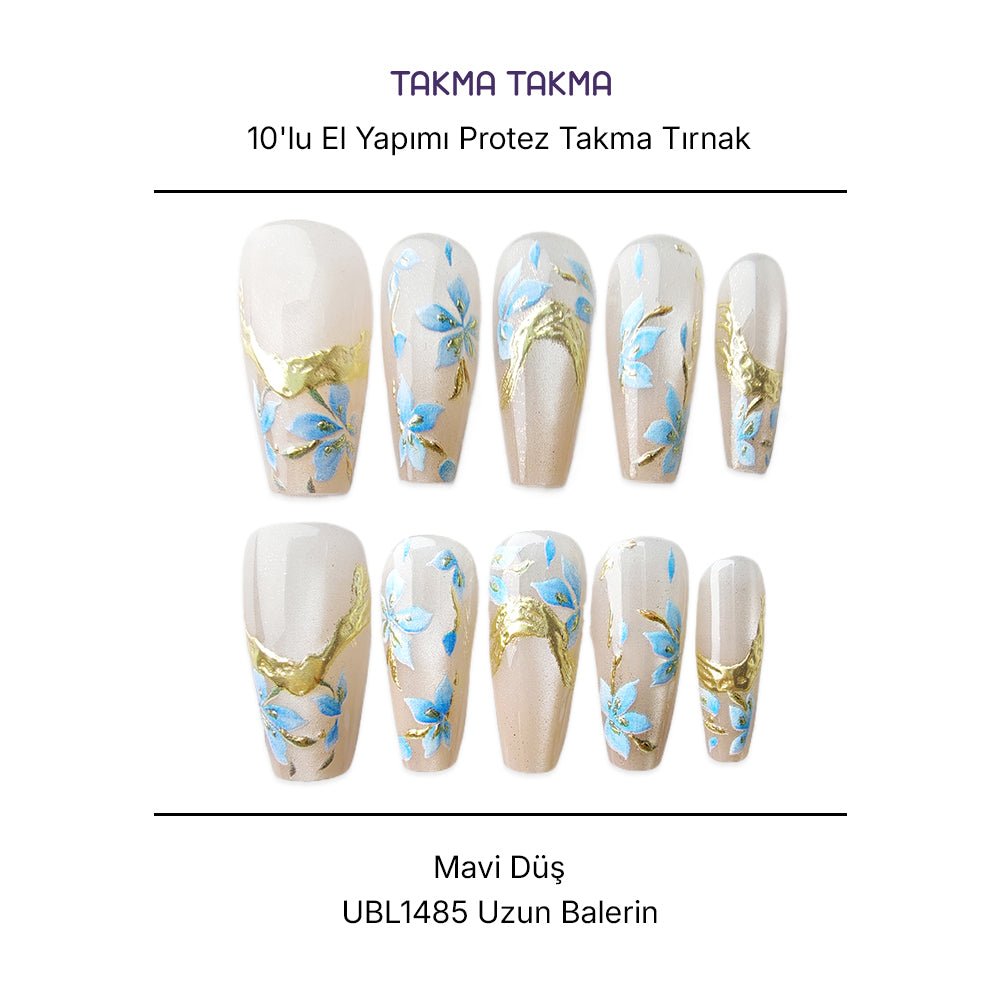 10'lu Ten Rengi Uzun Balerin UBL1485 Tekrar Kullanılabilir El Yapımı Protez Takma Tırnak