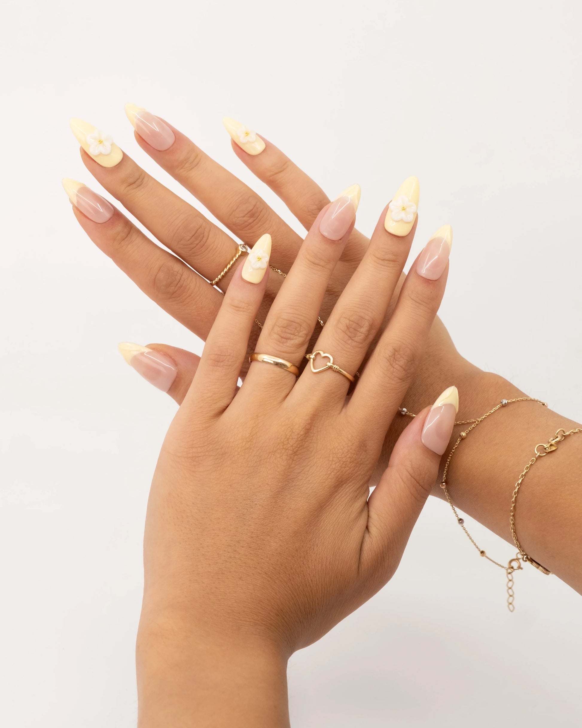10'lu Sarı Uzun Badem TT1370 Tekrar Kullanılabilir El Yapımı Protez Takma Tırnak