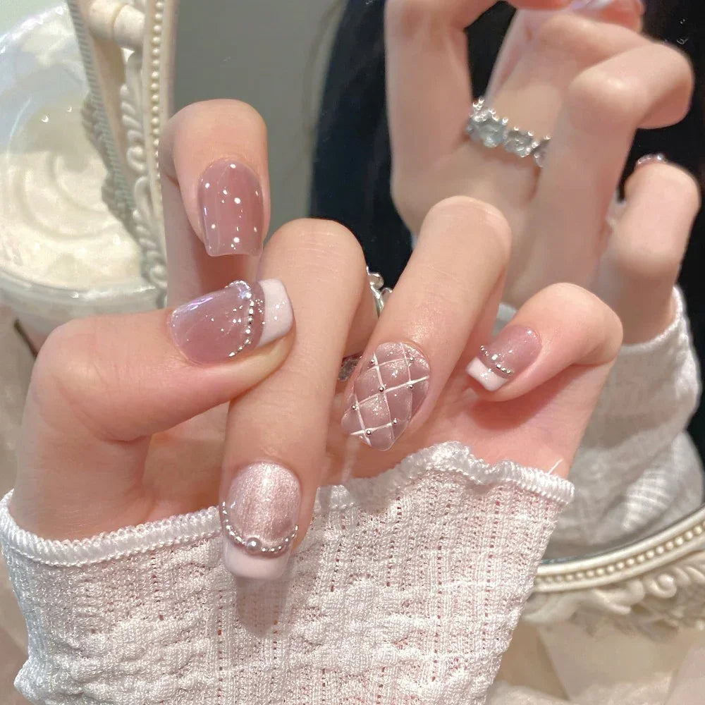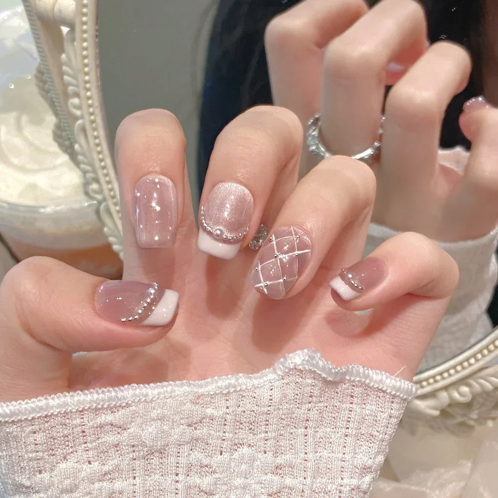 Tekrar Kullanılabilir El Yapımı Protez Takma Tırnak TT1129 - Pudra Şıklığı - 10'lu
