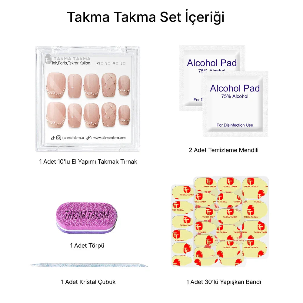 TakmaTakma tırnaklarınızı istediğiniz zaman çıkarıp tekrar takabilirsiniz, üstelik zahmetsizce! İstediğiniz gibi kullanabilir, her an şıklığınızı yenileyebilirsiniz.