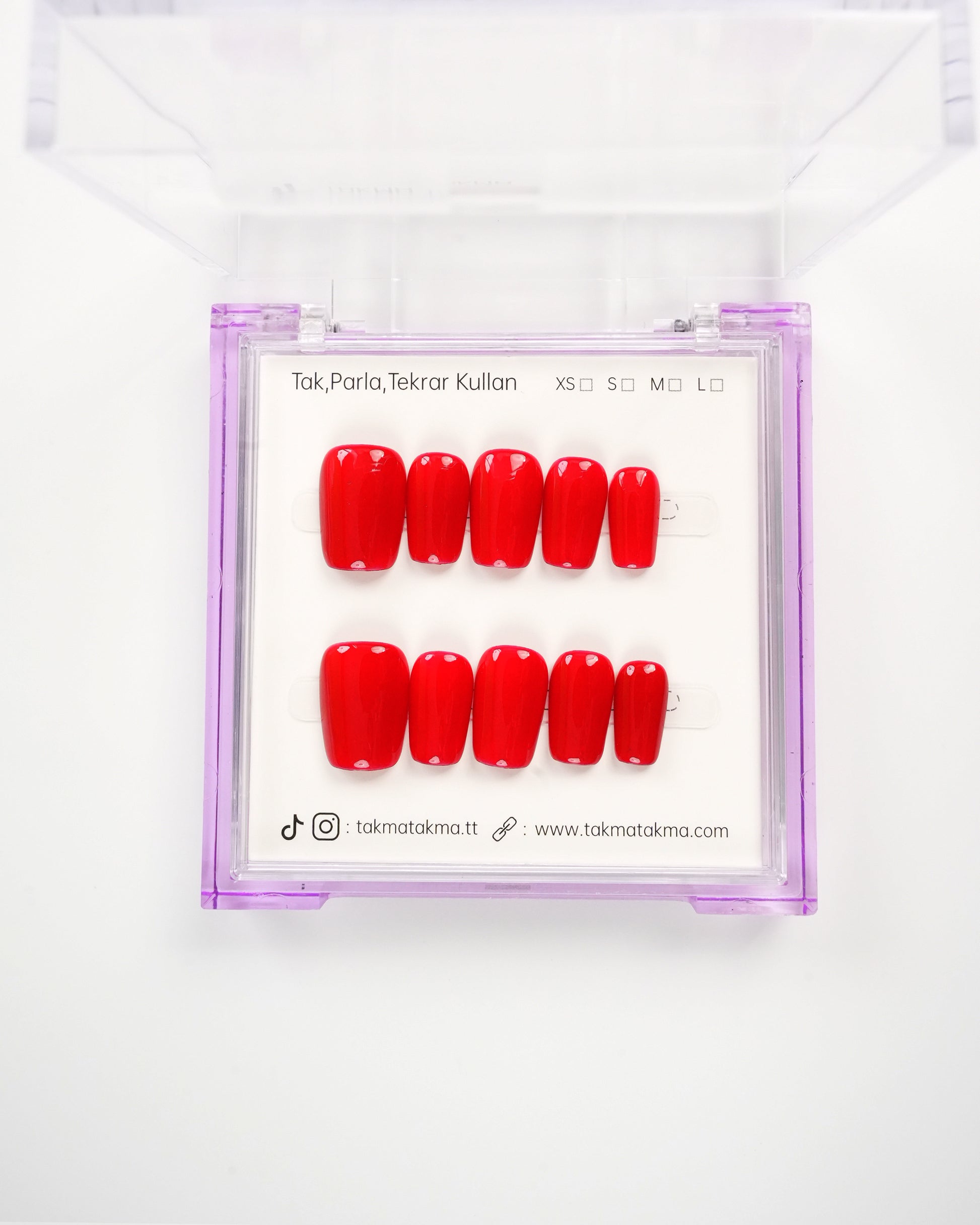 15'li Kırmızı Kısa Balerin KBL1469 Tekrar Kullanılabilir El Yapımı Protez Takma Tırnak