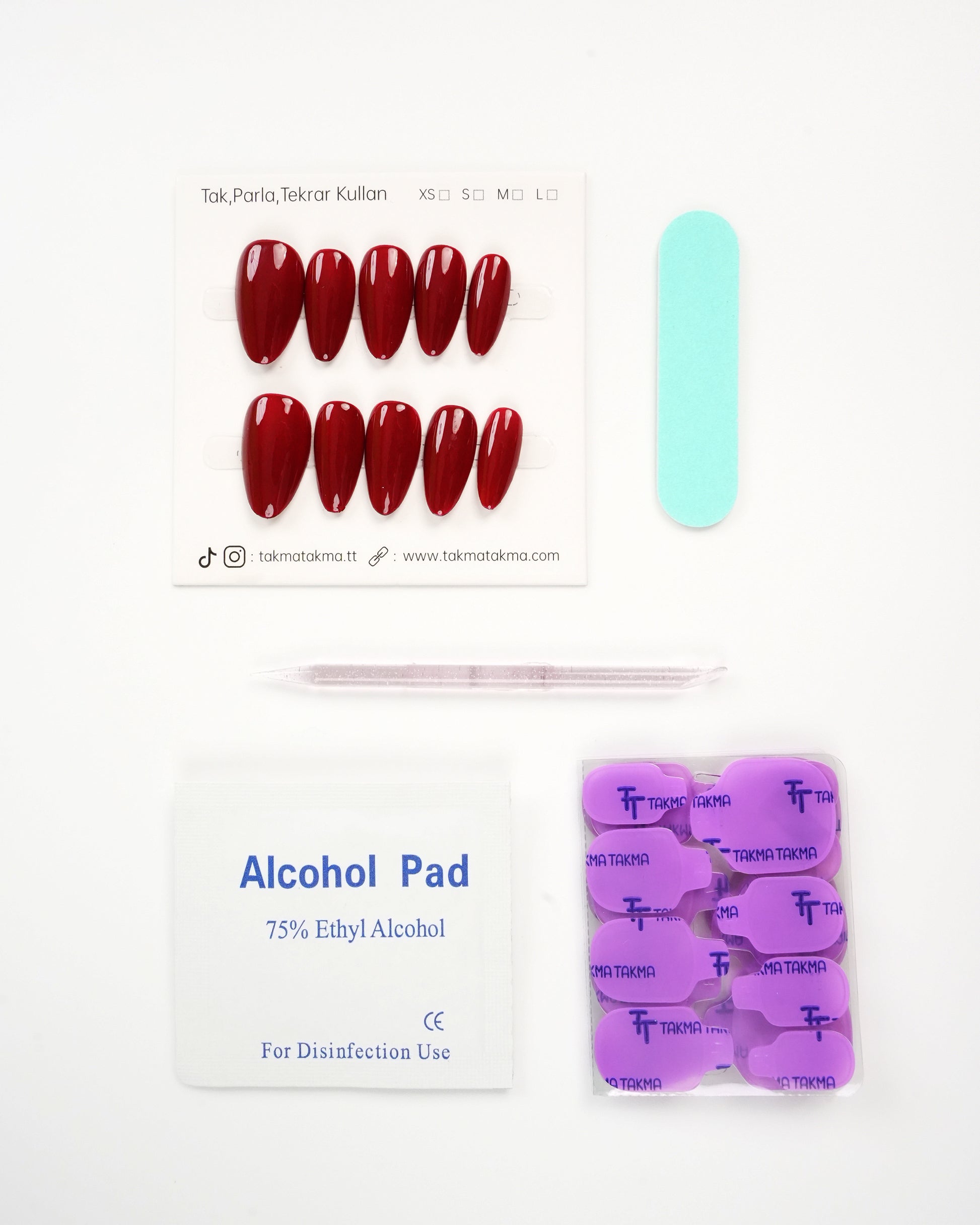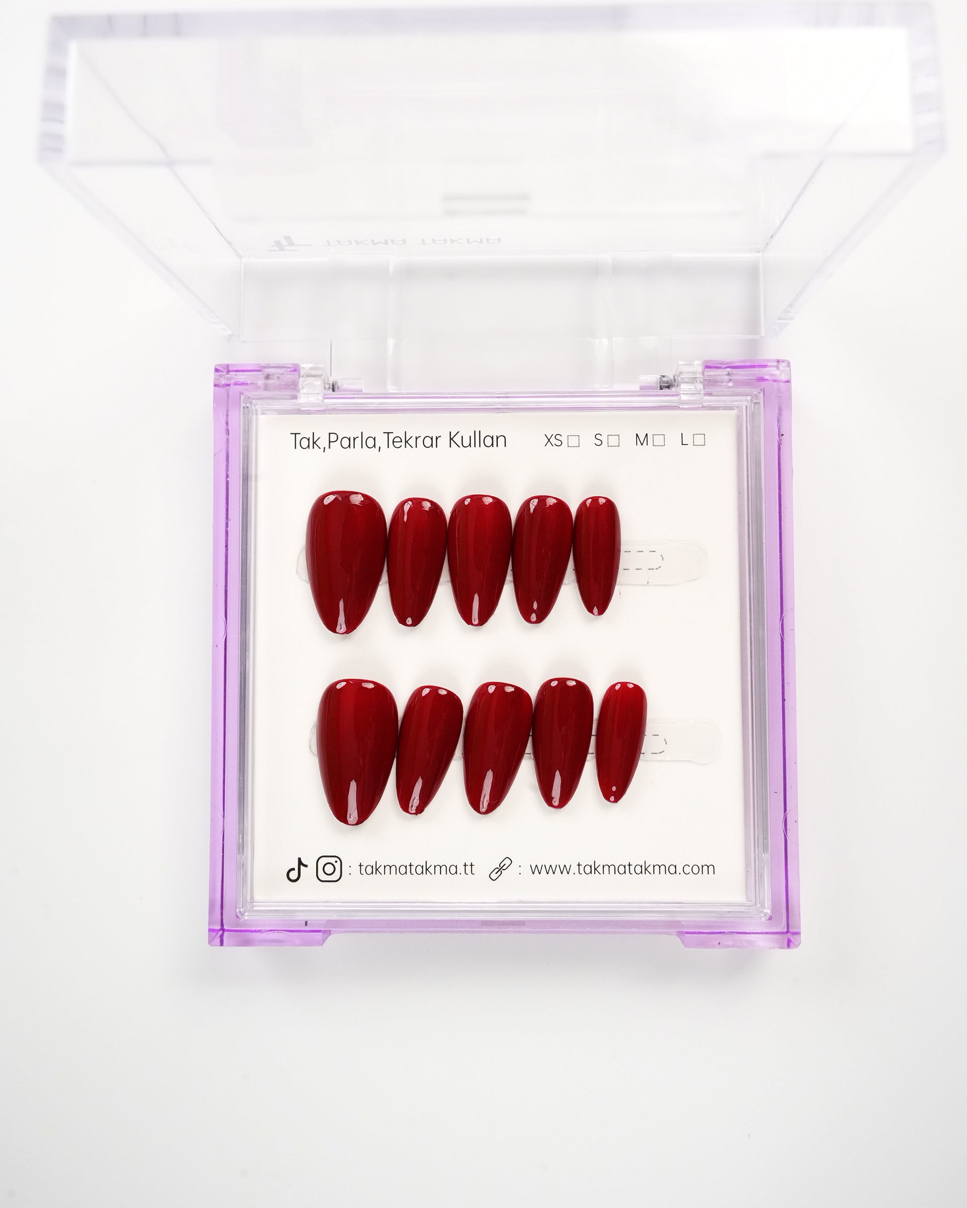 15'li Bordo Kısa Badem KBD1470 - Tekrar Kullanılabilir El Yapımı Protez Takma Tırnak