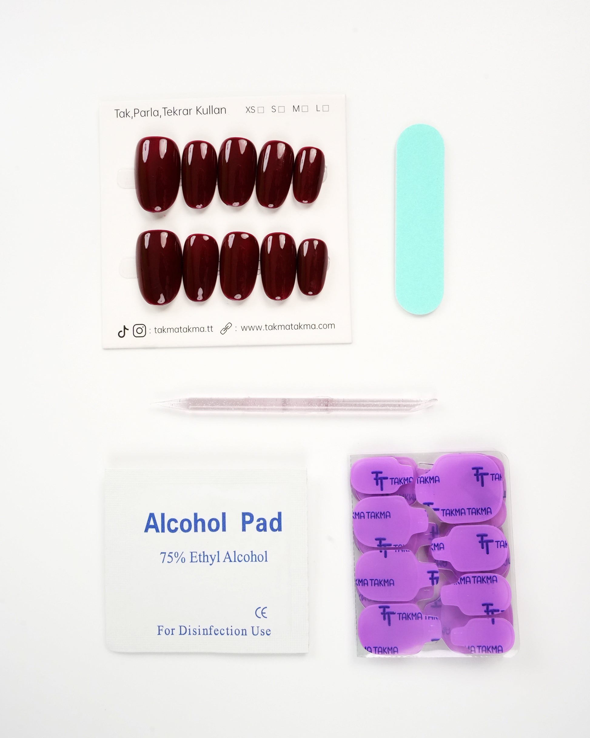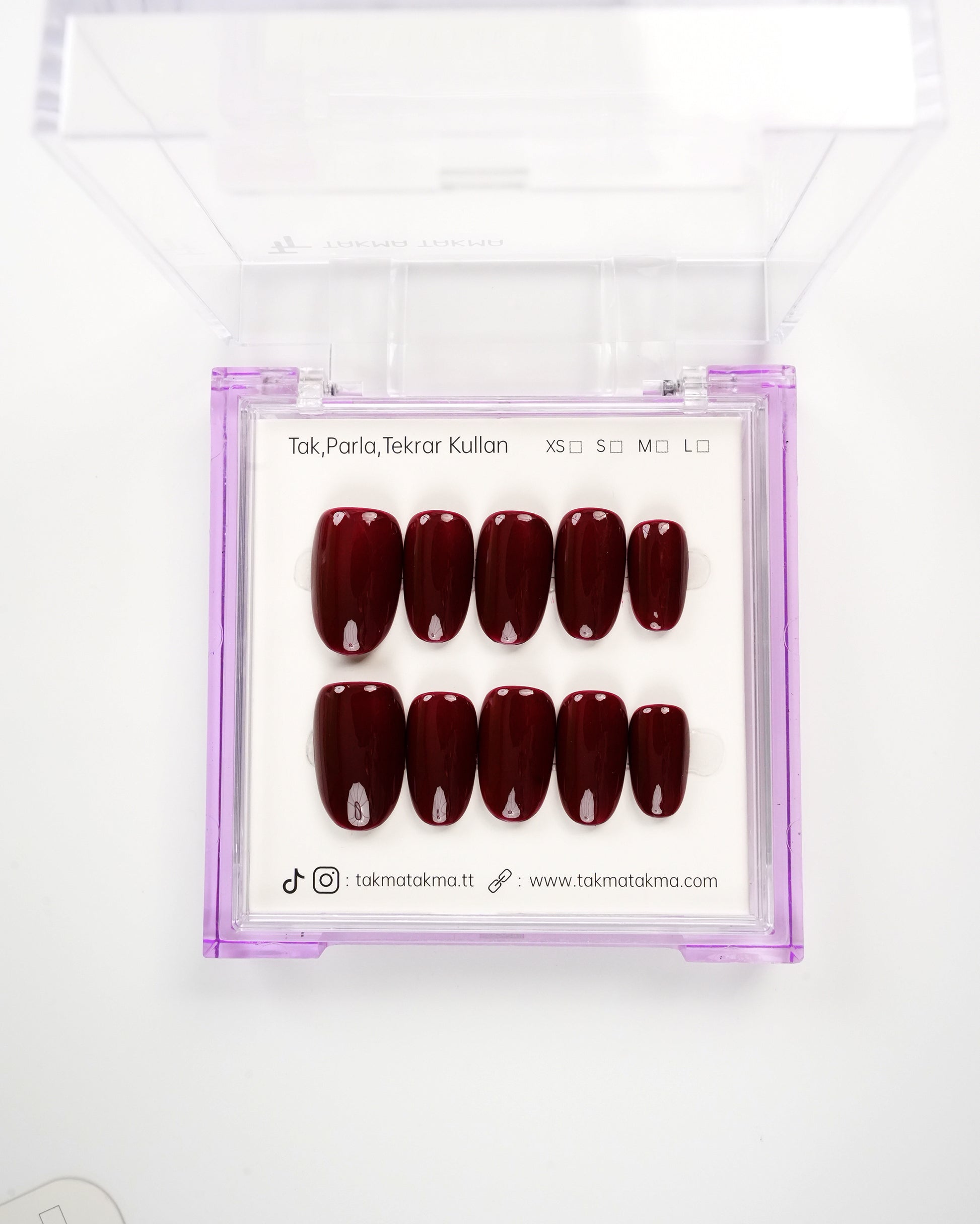 15'li Bordo Kısa Oval TT1420 Tekrar Kullanılabilir El Yapımı Protez Takma Tırnak
