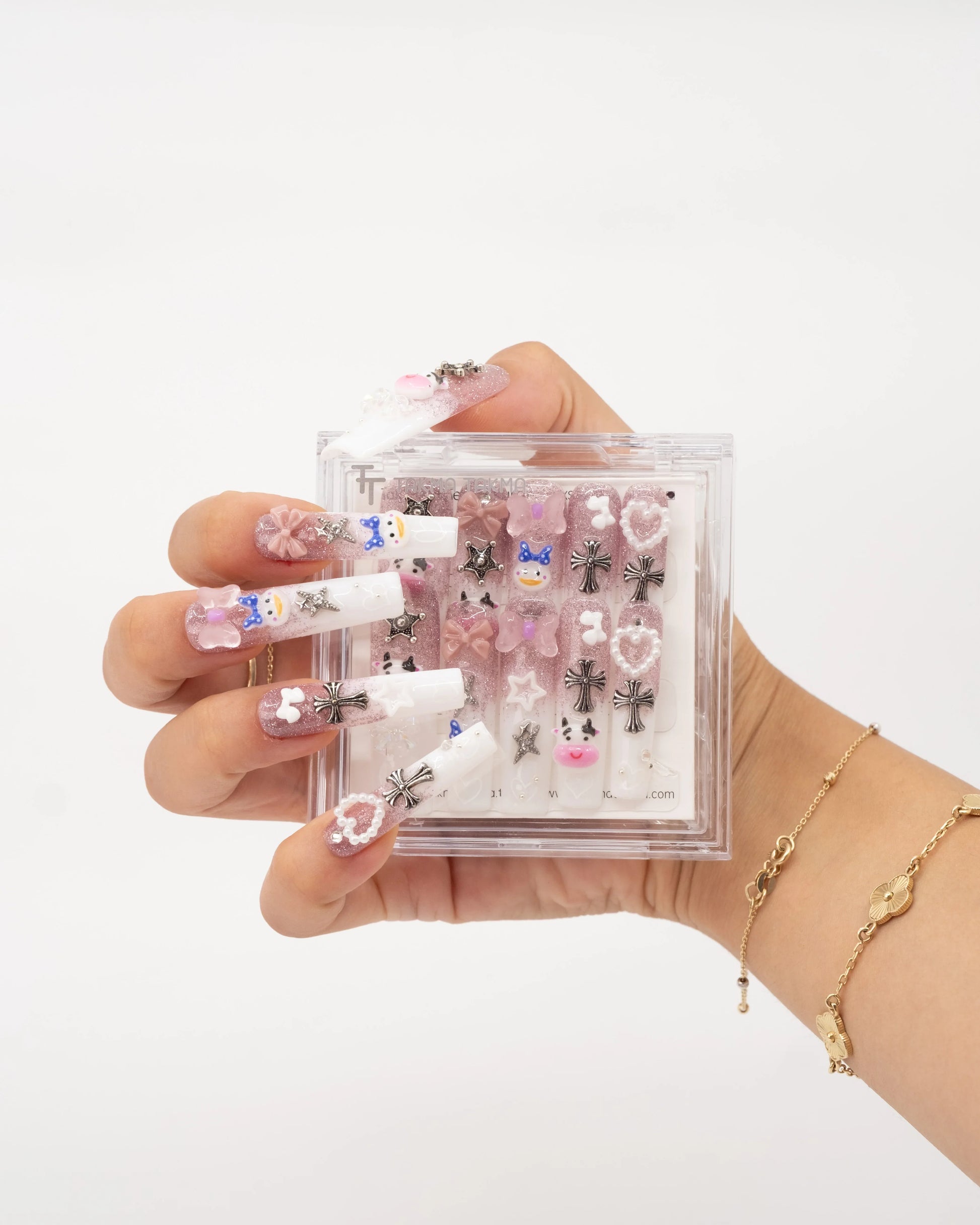 Uzun süreli zarafet için her şey hazır! Özel jel tırnak yapıştırıcımızı kullanarak tırnaklarınızı UV lamba ile mühürleyin. Kullanım süresi, kişisel alışkanlıklarınıza ve aktivitelerinize göre değişebilir.