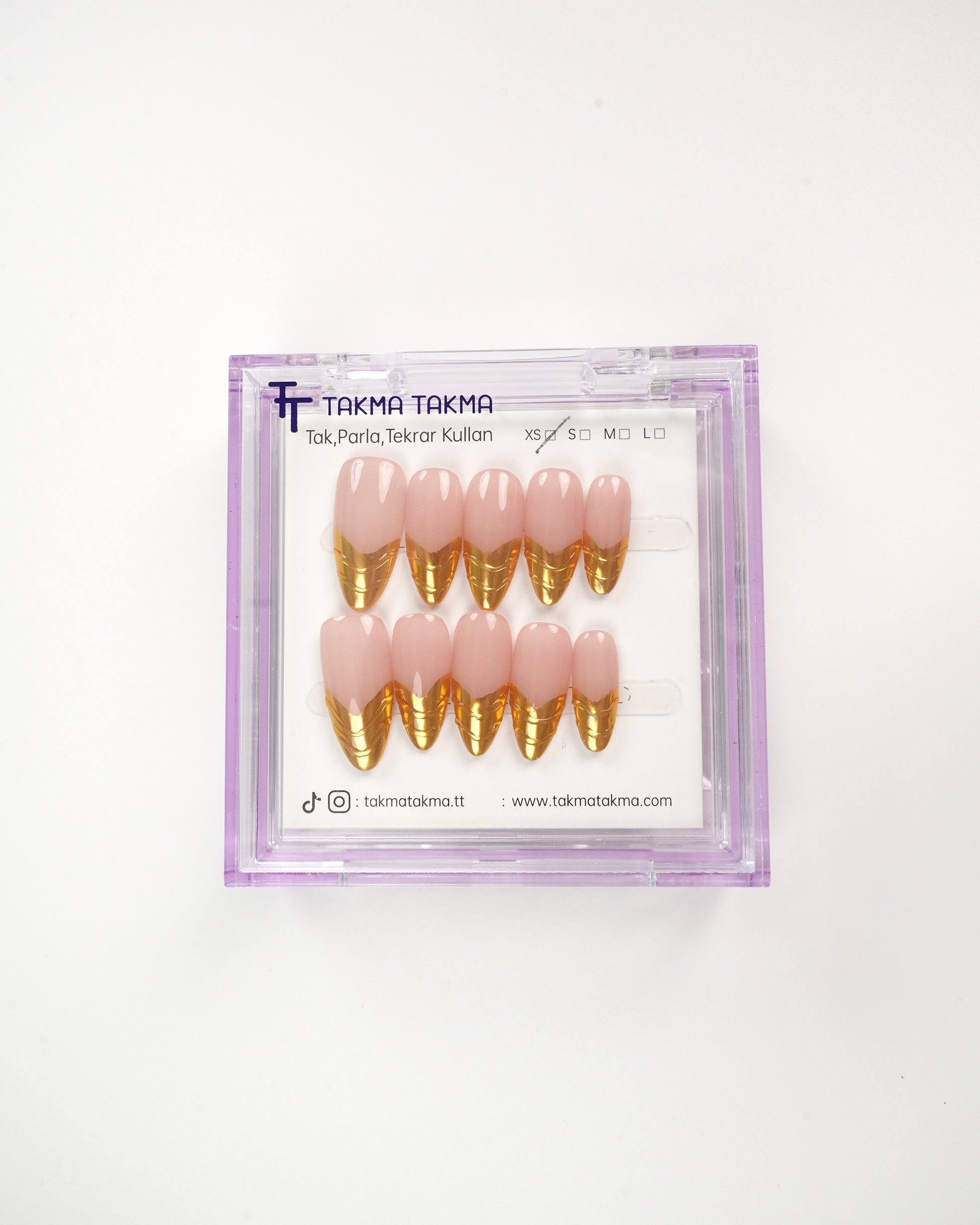 TakmaTakma tırnaklarınızı istediğiniz zaman çıkarıp tekrar takabilirsiniz, üstelik zahmetsizce! İstediğiniz gibi kullanabilir, her an şıklığınızı yenileyebilirsiniz.