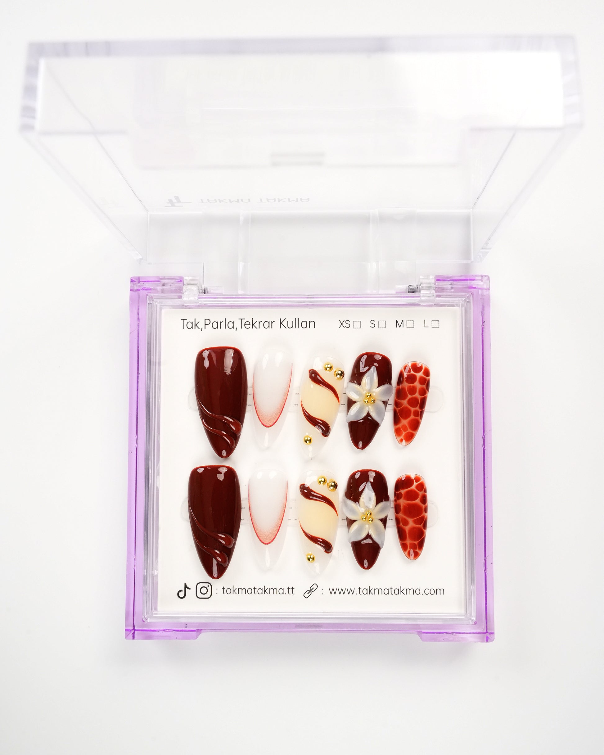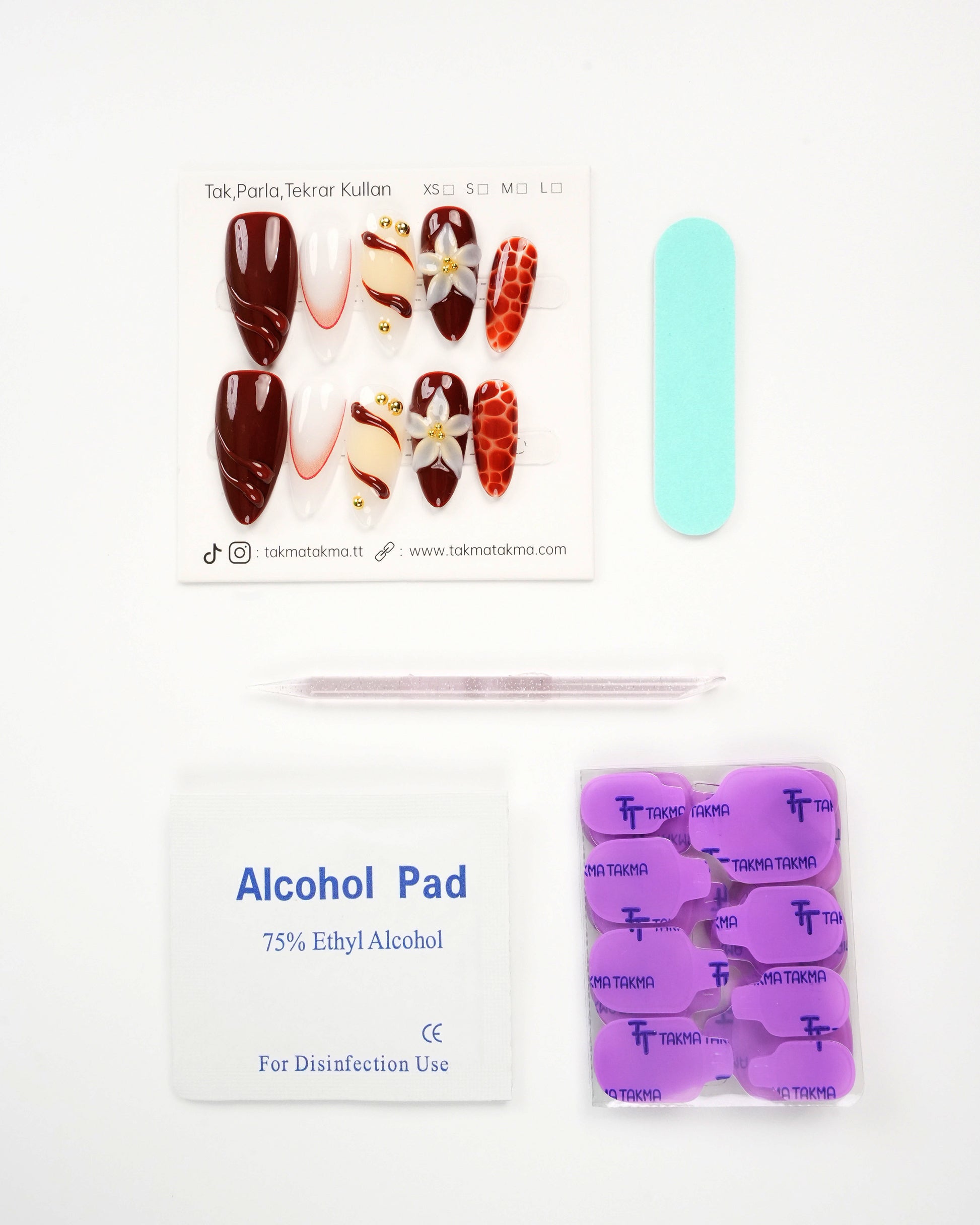 TakmaTakma tırnaklarınızı istediğiniz zaman çıkarıp tekrar takabilirsiniz, üstelik zahmetsizce! İstediğiniz gibi kullanabilir, her an şıklığınızı yenileyebilirsiniz.