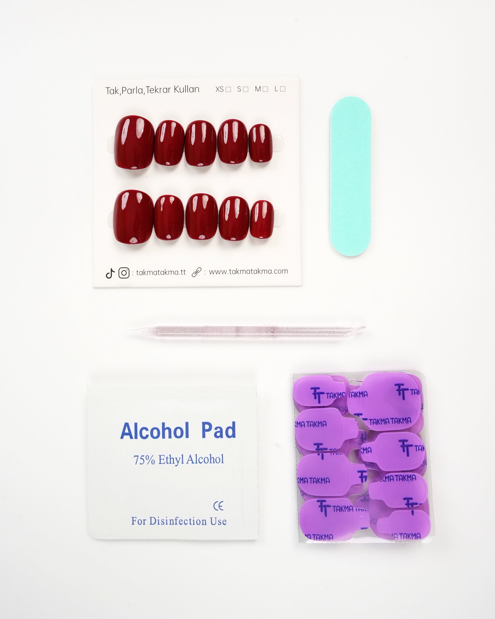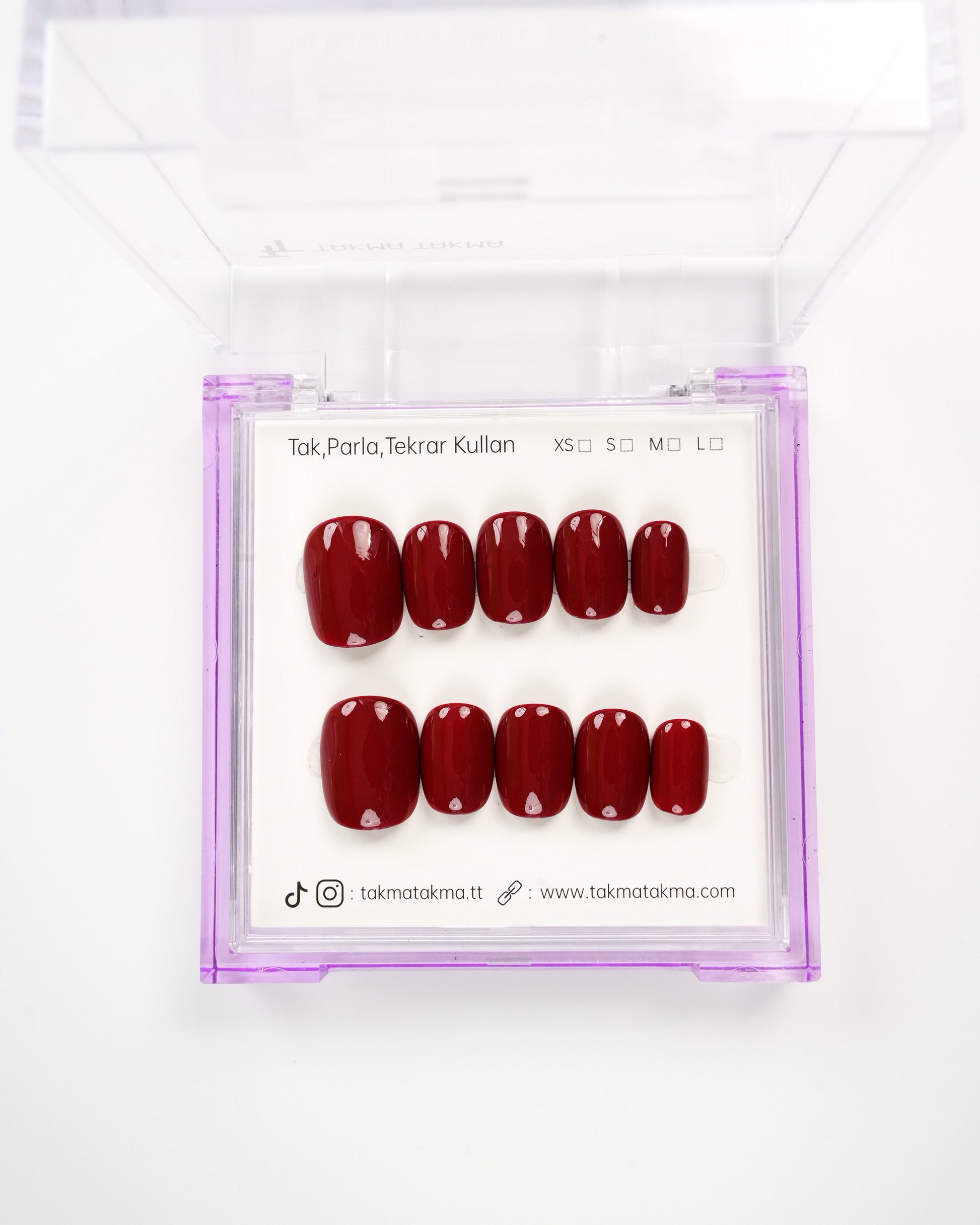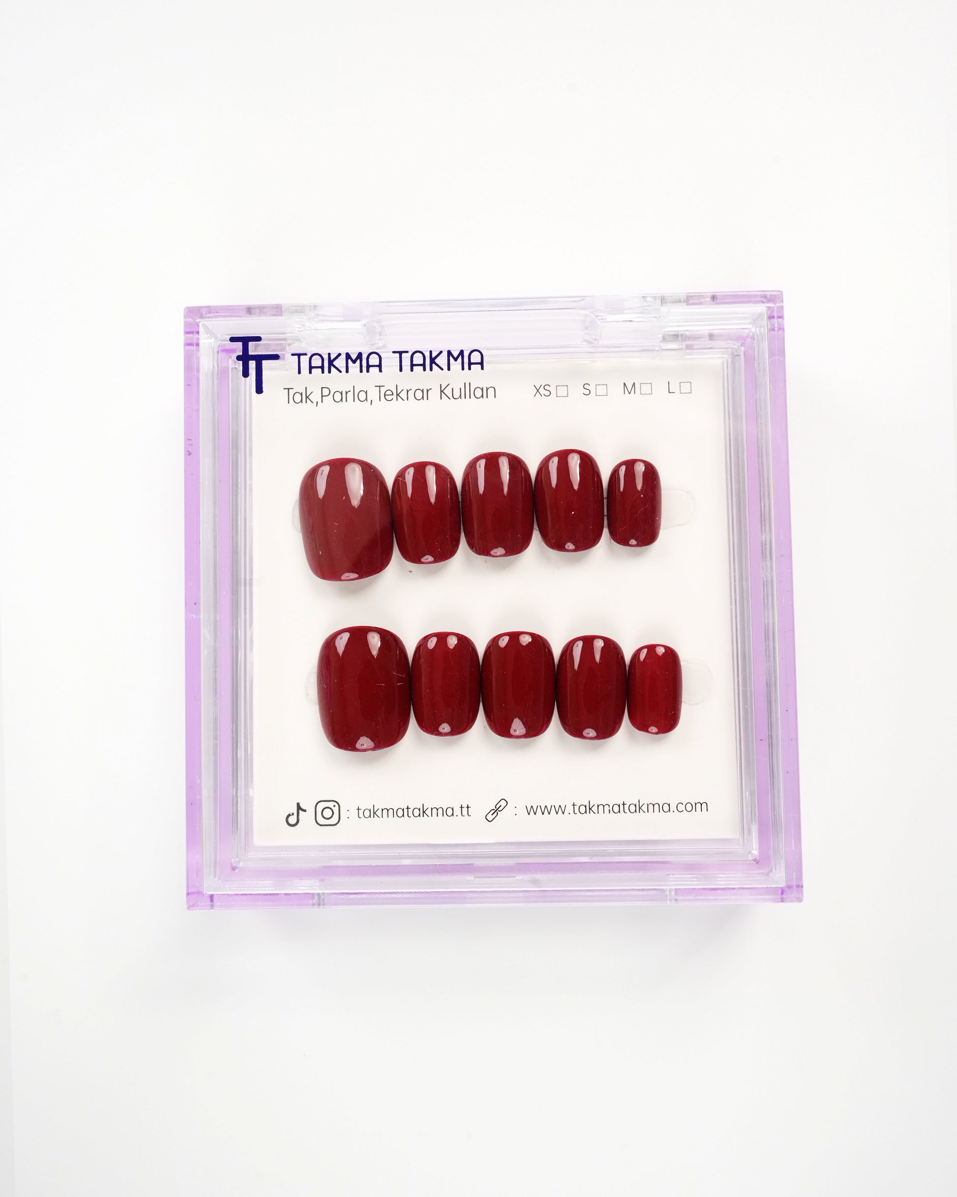 15'li Bordo Kısa Yuvarlak KYL1519 Tekrar Kullanılabilir El Yapımı Protez Takma Tırnak