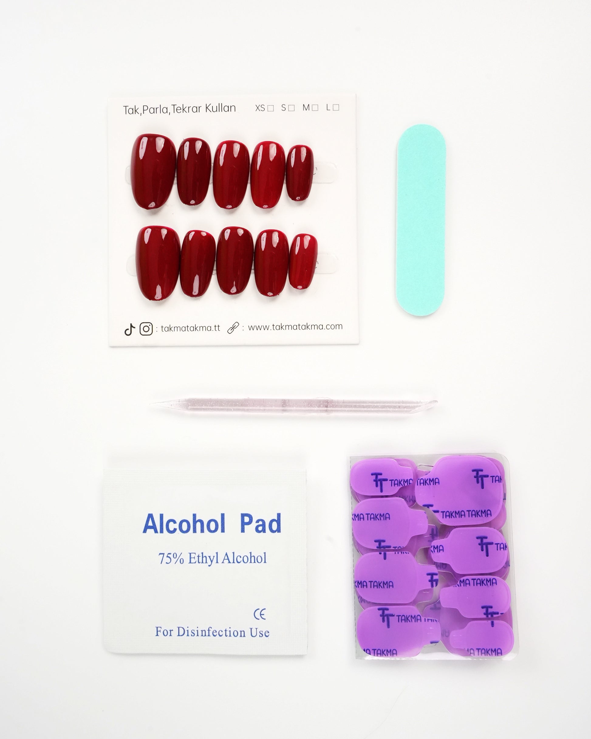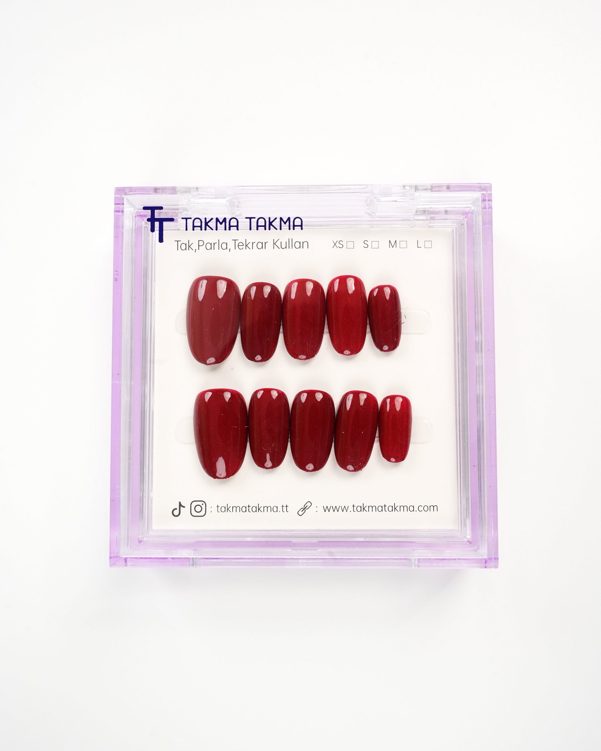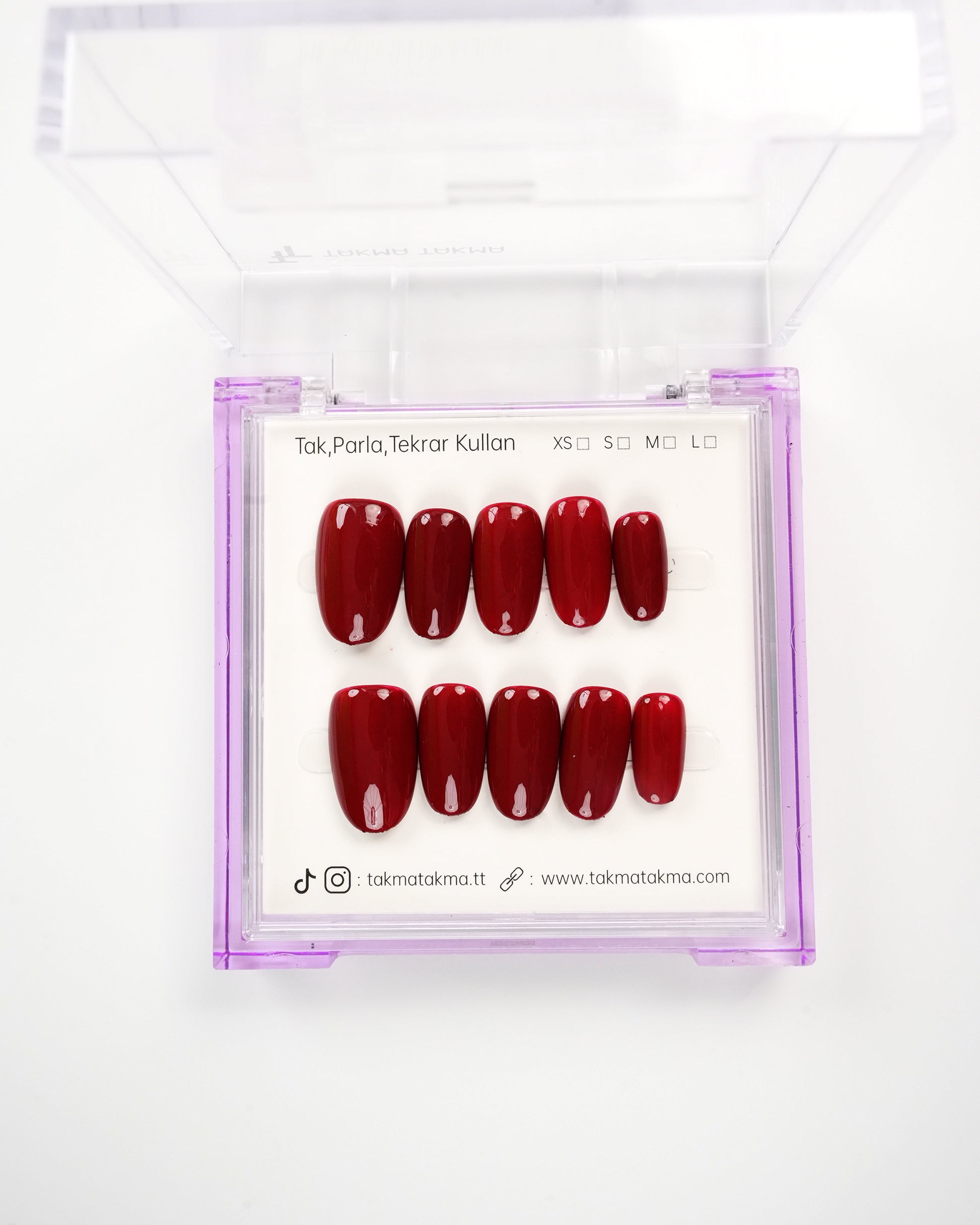 15'li Kırmızı Kısa Oval KOV1560 Tekrar Kullanılabilir El Yapımı Protez Takma Tırnak