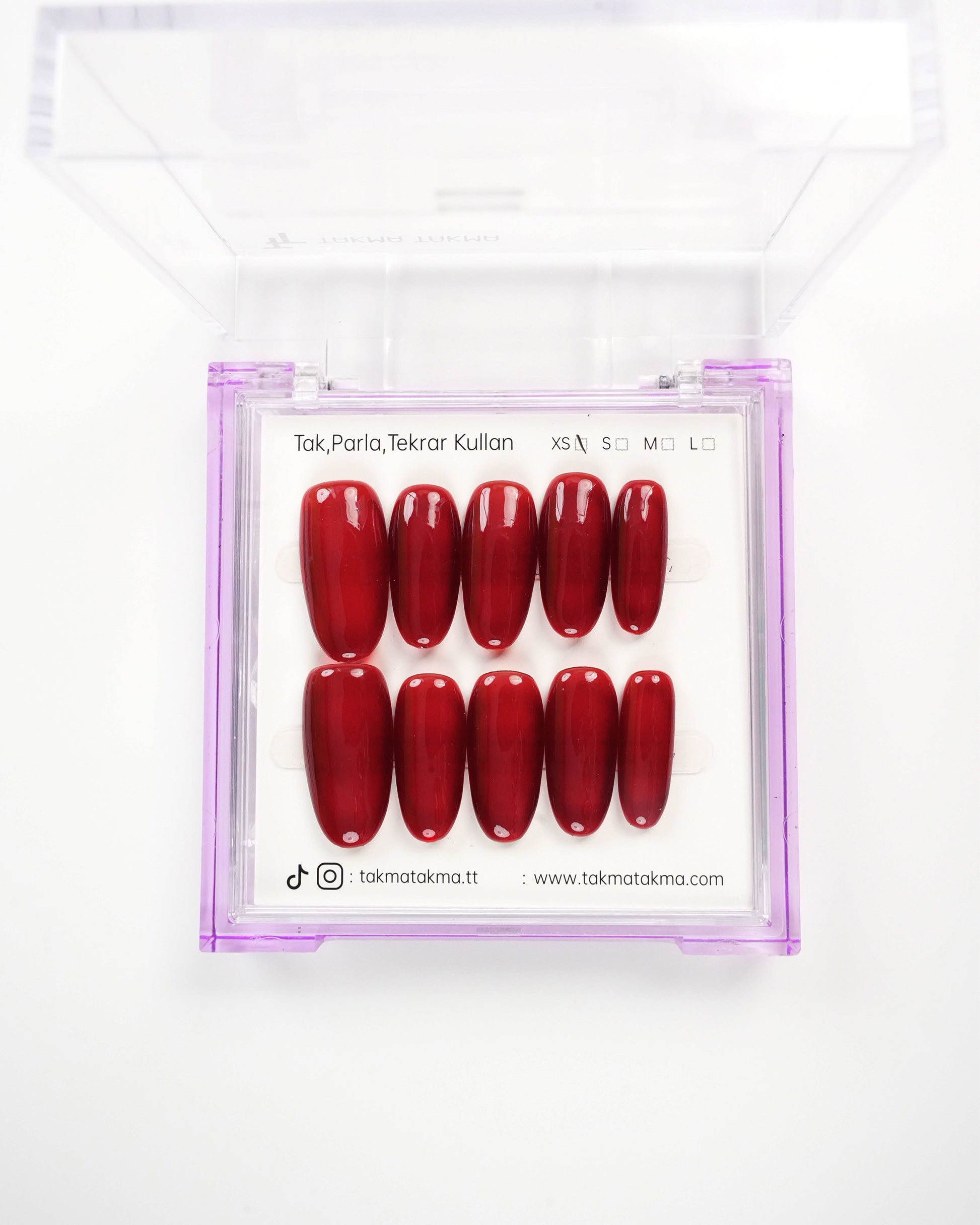 15'li Kırmızı Uzun Oval UOV1564 Tekrar Kullanılabilir El Yapımı Protez Takma Tırnak