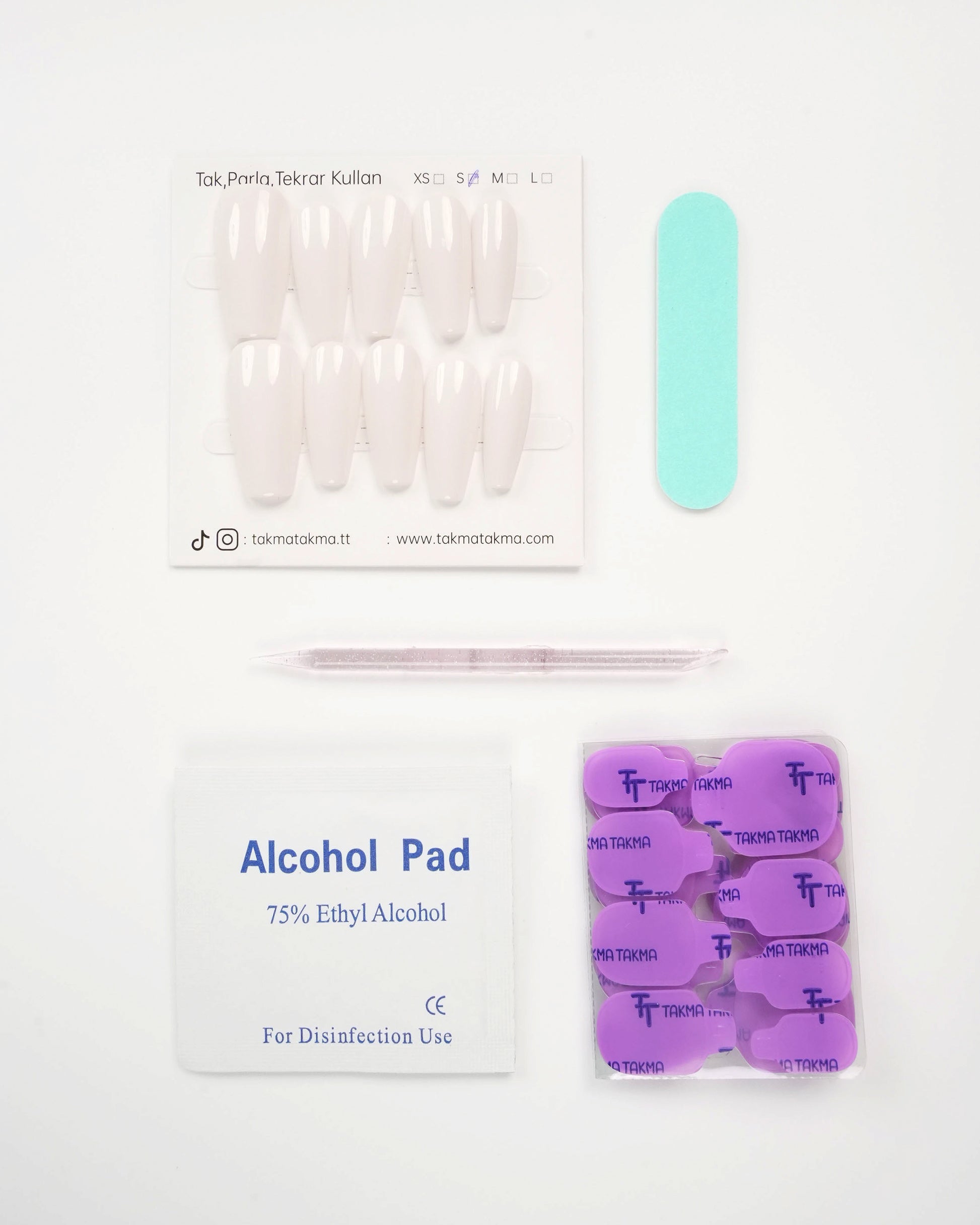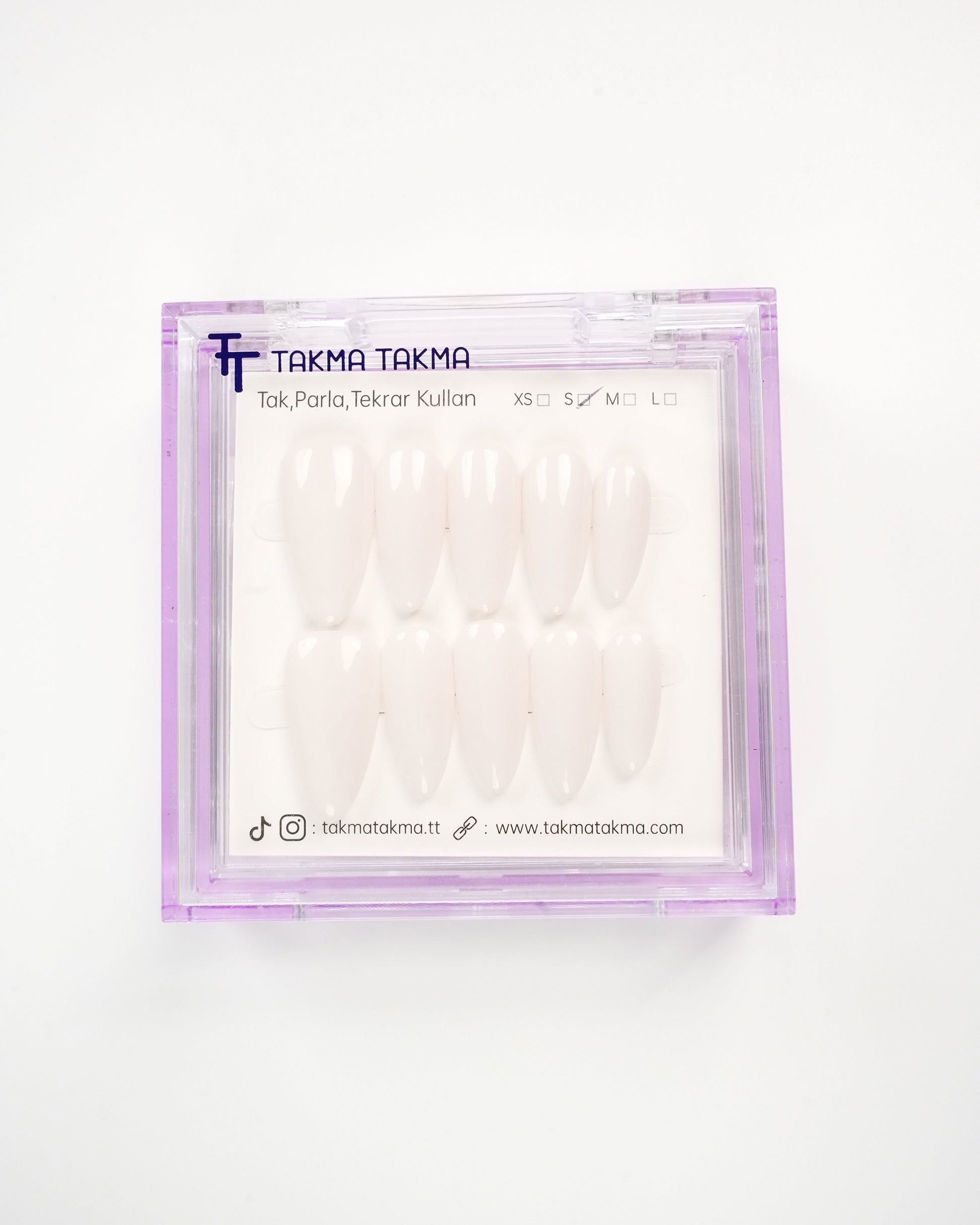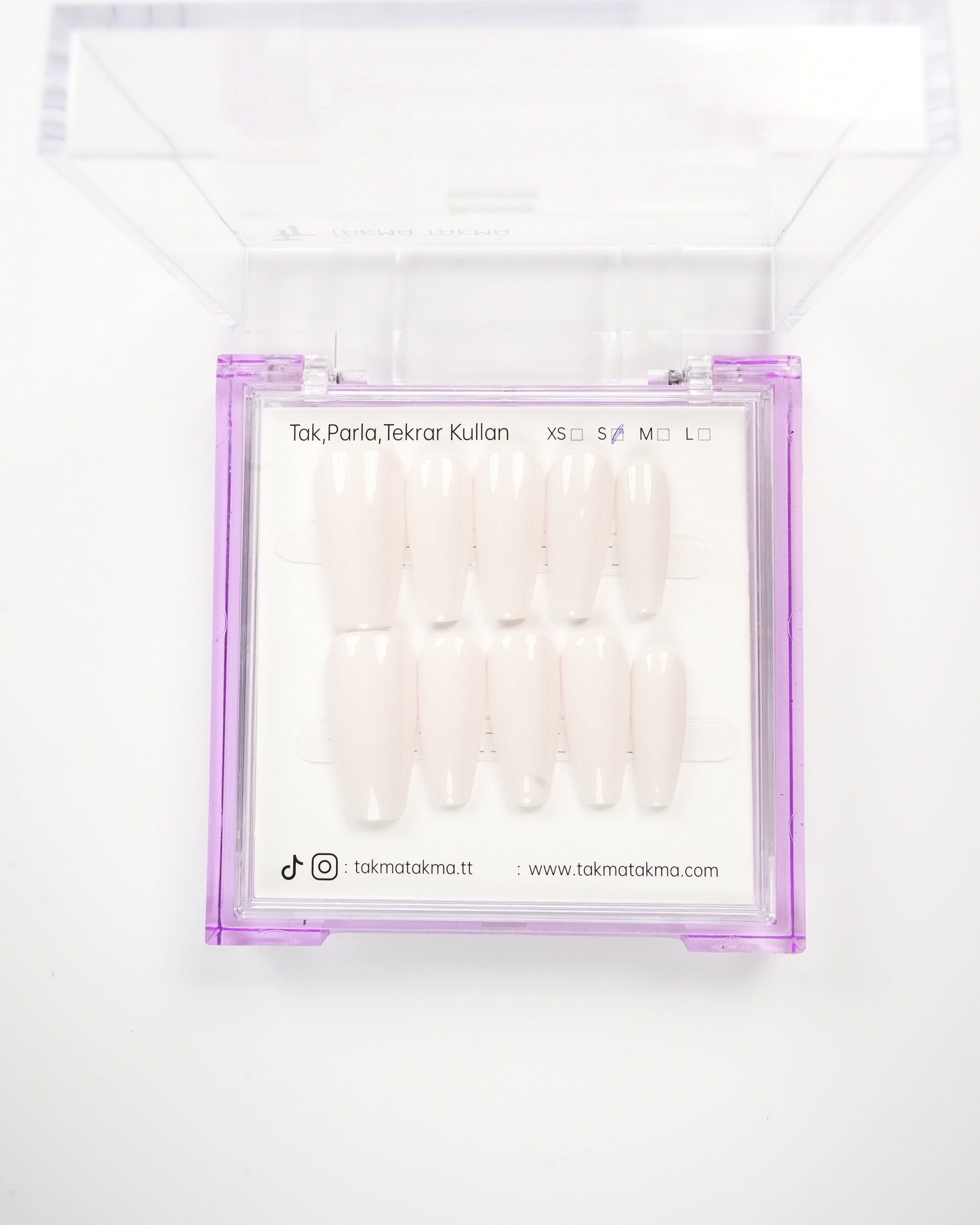 15'li Krem Uzun Balerin UBL1543 Tekrar Kullanılabilir El Yapımı Protez Takma Tırnak